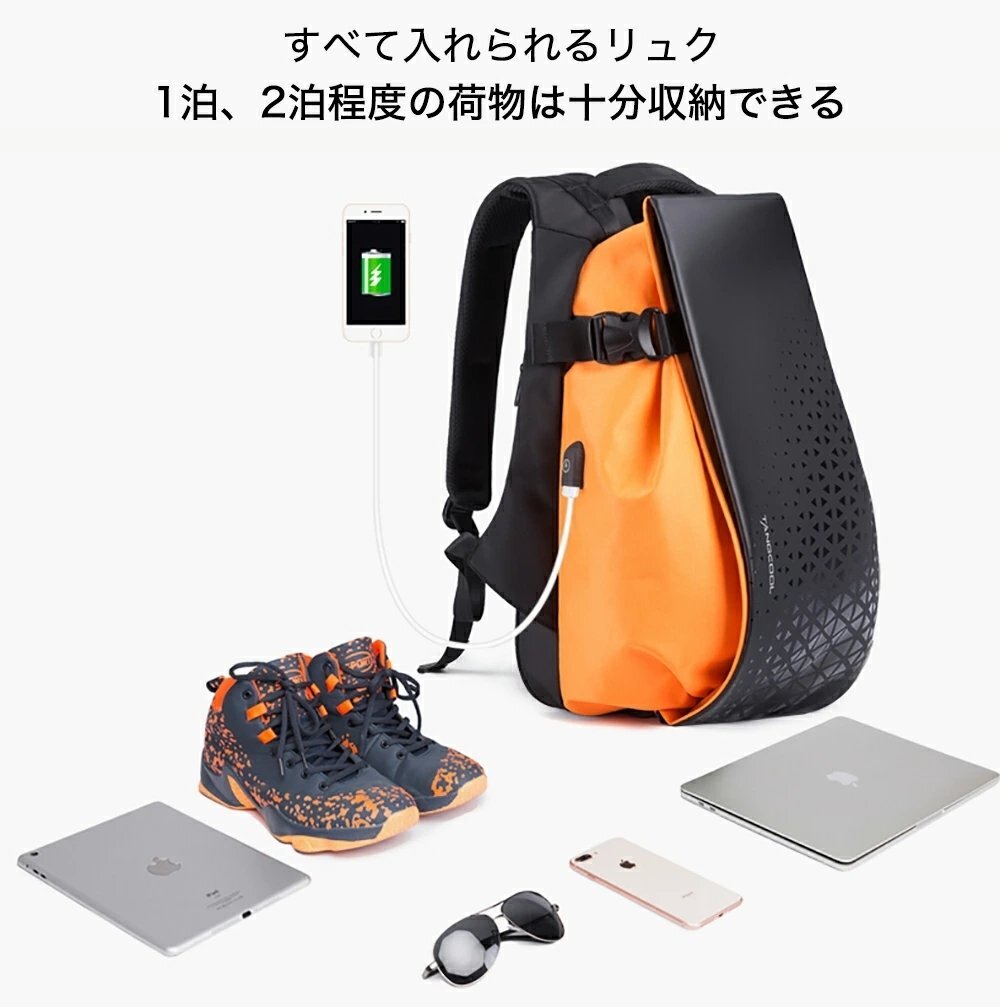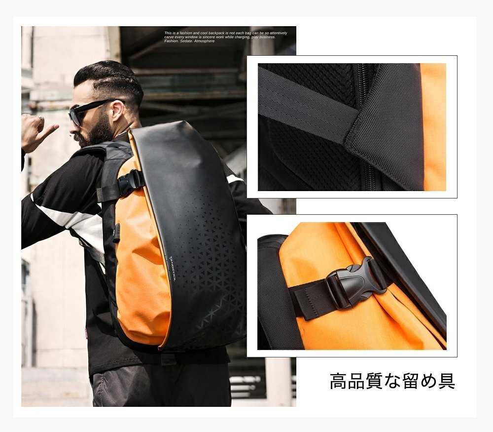 【ビジネスリュック メンズ】ファッション設計で、実用性も高いリュックサックです。バックパックの中身は綺麗な蛍光オレンジで、何か入っているかすぐ分かる。背面ポケットは180°広がり、荷物が一目瞭然で把握できる。ビジネスはもちろん、通勤も通学も、自転車やバイクのサイクリング・ツーリング・山登りなどのアウトドア活動にもおすすめ。