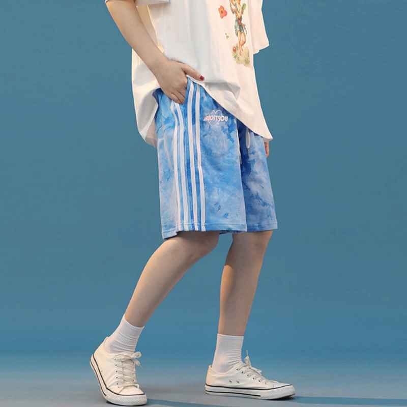 ビビッドなカラーがインパクト大のタイダイ柄サイドラインハーフパンツ