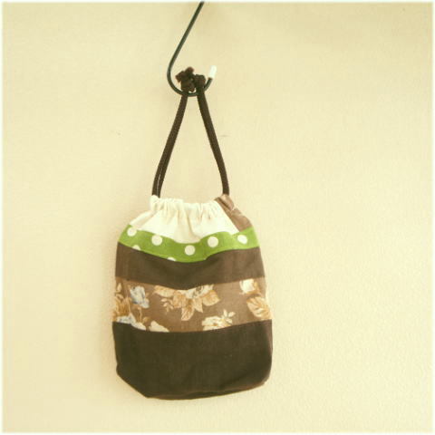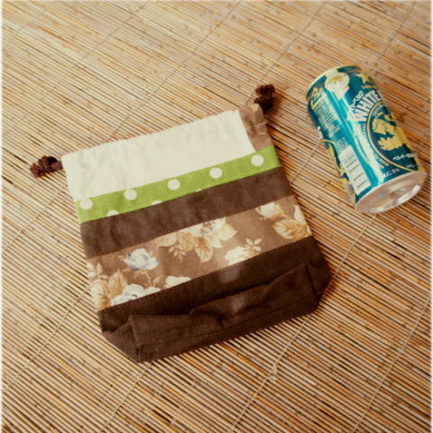 【入学、入園!】450円茶薔薇プリントパッチワーク巾着袋 【手作り小物】