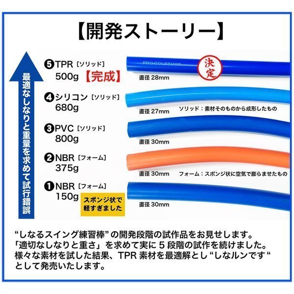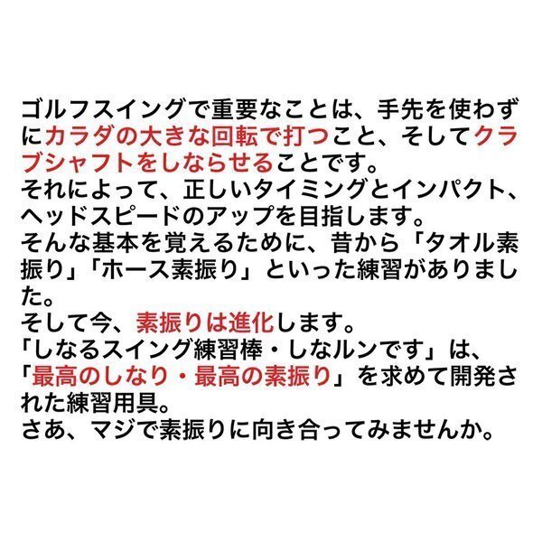 「しなるスイング練習棒・しなルンです」は、「最高のしなり・最高の素振り」を求めて開発された練習用具。