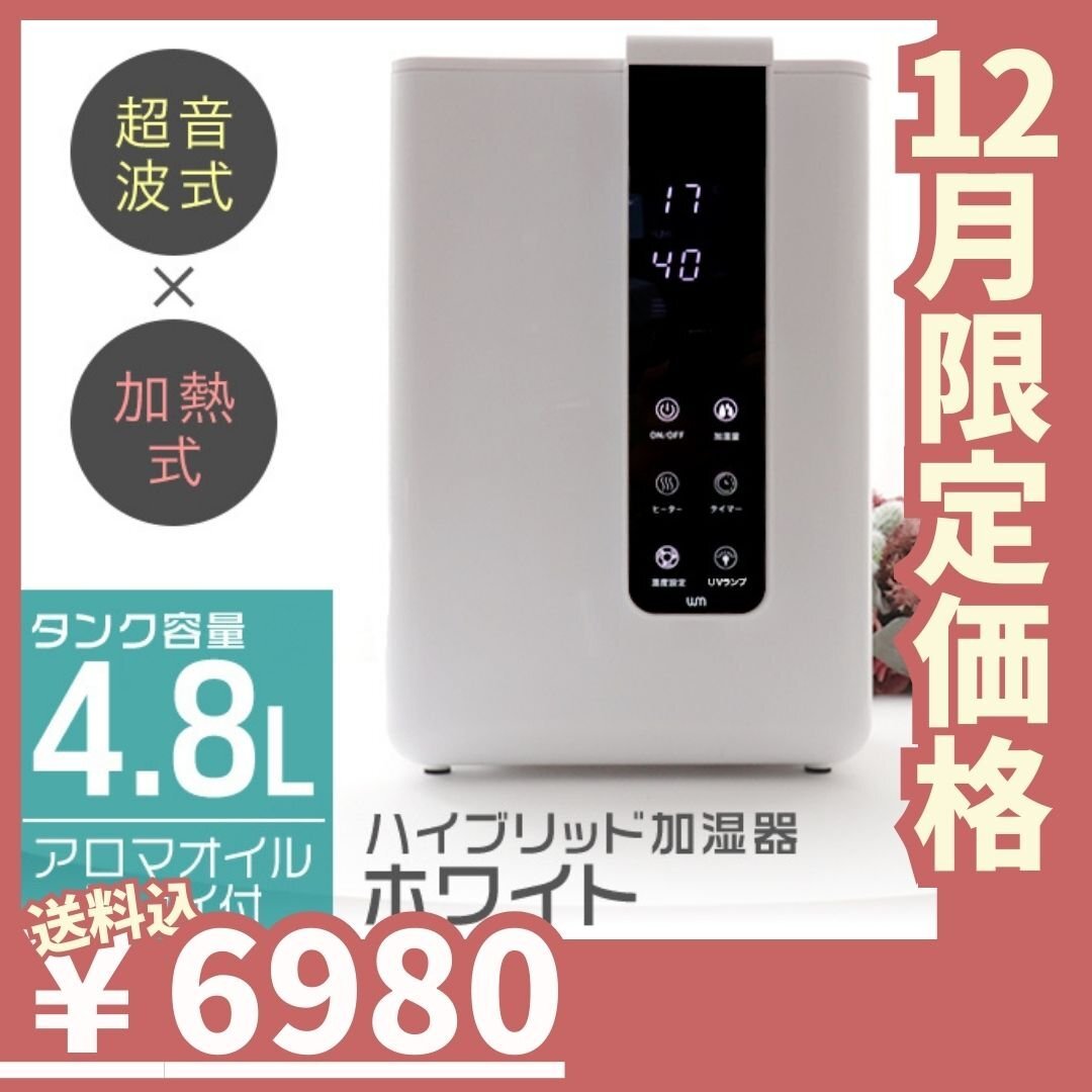 ハイパワーな加湿力で素早く潤いを届けるハイブリッド加湿器。 熱くないミストは触っても平気なので、お子さまのいるご家庭でも安心です。 【商品仕様】 カラー:ホワイト サイズ:(約)幅220×高さ300×奥行160mm 重量:(約)1kg(水の重さ含まず) 加湿方式:超音波式 最大加湿能力:(約)300ml/h(調整可能) 対応面積:(約)10畳 タンク容量:4.8L コード長:(約)1200mm 電源:AC110V 50/60Hz 消費電力:25W 素材:ポリプロピレン 他 |