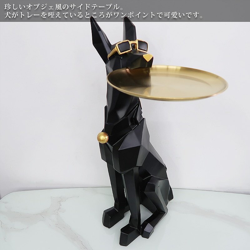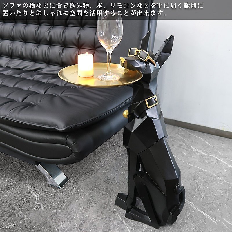 ![]() 珍しいオブジェ風のサイドテーブルです。 犬がトレーを咥えているようなデザインのサイドテーブルは、ユニークで魅力的なアクセントアイテムです。 まるで忠実な仲間がトレーを持っているかのような姿勢が、心温まる感覚を呼び起こします。 トレーを咥えているところがワンポイントで可愛いです。 犬の愛らしいフォルムが、インテリアに温かみと楽しさをもたらします。 ソファの横などに置き飲み物、本、リモコンなどを手に届く範囲に置いたりとおしゃれに空間を活用することが出来ます。 耐久性のある素材で制作されており、長い間お部屋の一部として楽しむことができます。 また、親しい方へのギフトとしても喜ばれることでしょう。 届いてスグに使えるカンタン組立 天板を犬の口に咥えさせるだけ! 複雑な作業は必要ないので、慣れてない方でもカンタンに組み立てることが出来ます。 トレーは取り外し可能となっております。 サイズ(約):縦72cm、横20cm、奥行き26cm トレーサイズ(約):横26cm、奥行21cm カラー:ブラック×ゴールド 素材 本体:プラスチック トレー:ステンレス 重量(約):3.6kg ※この商品はお客様の方で簡単な組み立てが必要になります。 |
