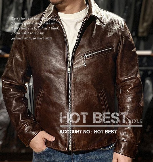 カウハイド 1930s トラッカースタイル シングルライダース ヴィンテージ加工 オイルレザー 牛革 Y2722/S~5XLサイズ指定可