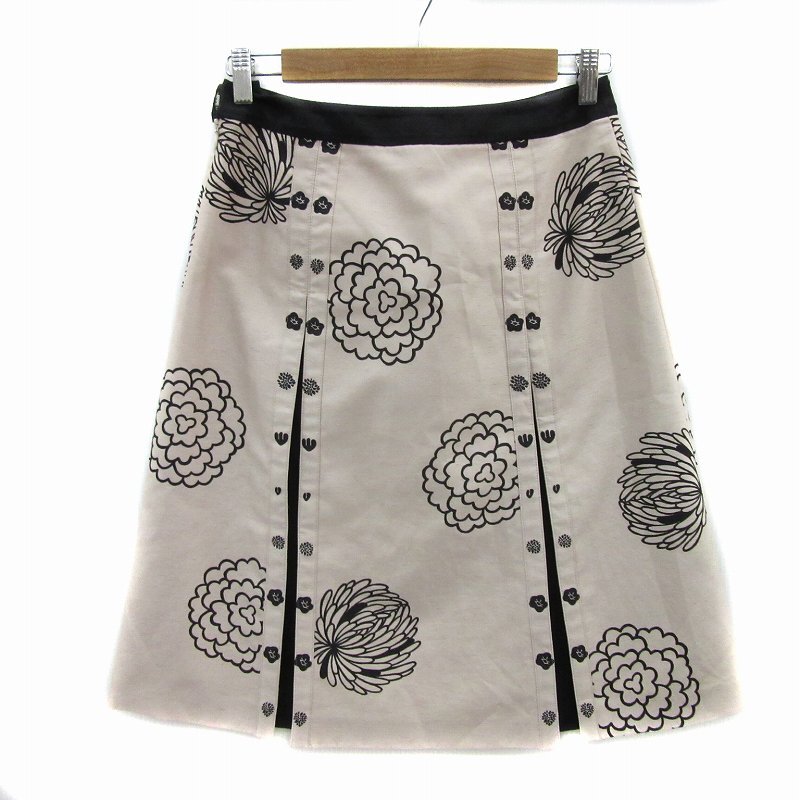トゥービーシック TO BE CHIC フレアスカート ミモレ丈 花柄 42 L 黒 ブラック 薄ピンク /YS26 レディース