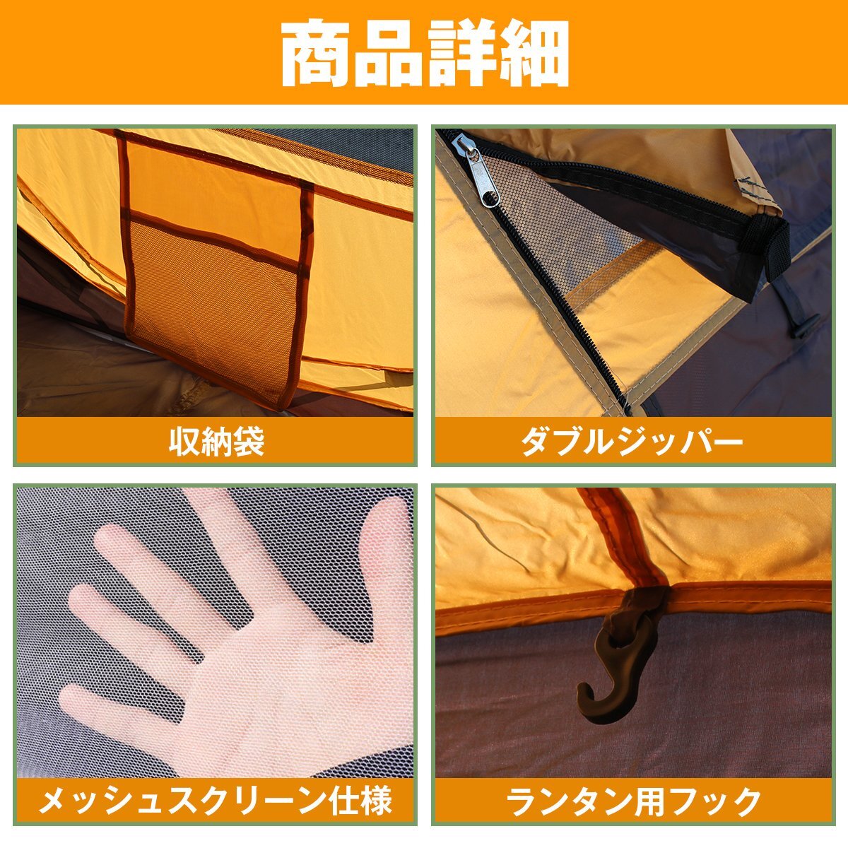 3人から4人用! 簡単組み立て! ワンタッチ式 ドーム型 テント キャンプ アウトドア ワンタッチテント ドームテント ベージュ 簡易テント