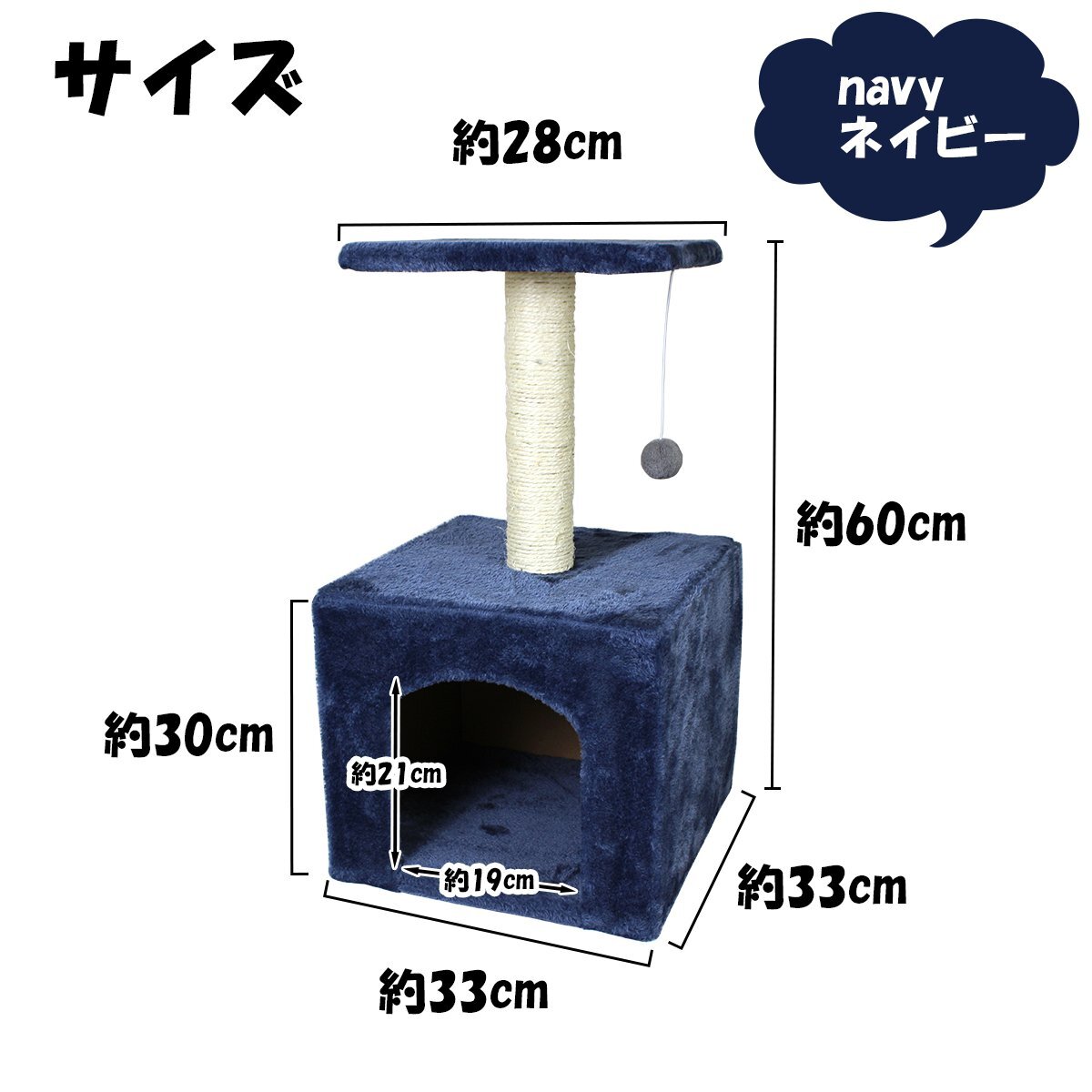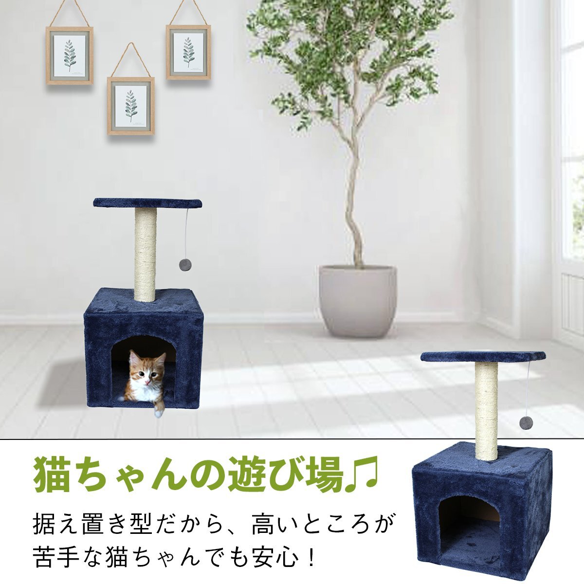 キャットタワー 高さ60cm ネイビー 据え置き ネコハウス コンパクト 運動不足解消 爪磨き 遊び場や隠れ家として最適♪置き型