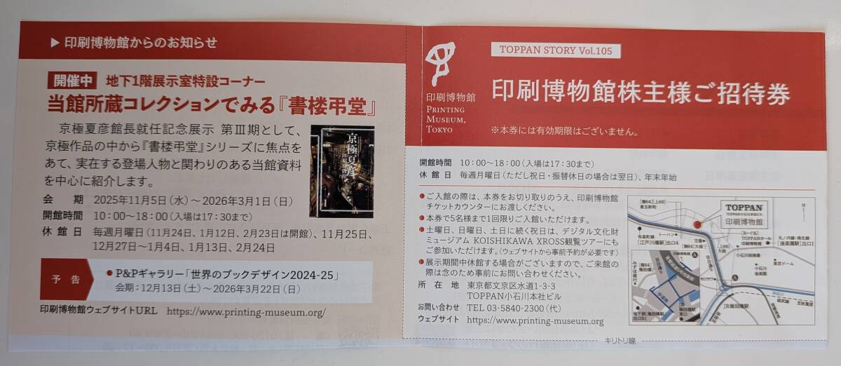 TOPPAN 印刷博物館株主様ご招待券1枚