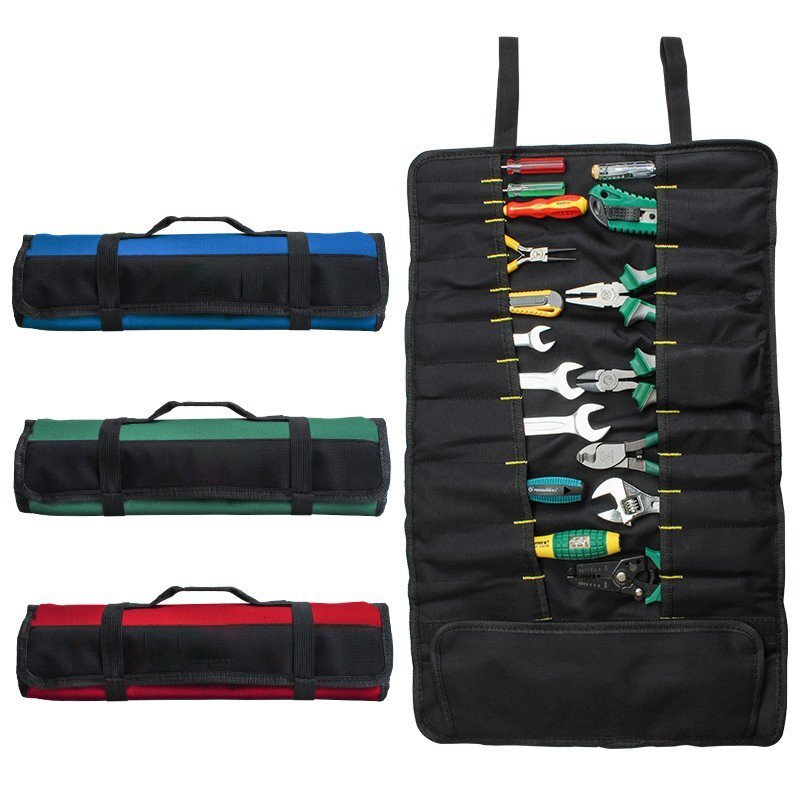 ツールロール 22ポケット 工具袋 収納ポケット 持ち手付き 工具収納 工具差し入れ 持ち運び便利 シンプル DIY 修理 作業 ブルー 652