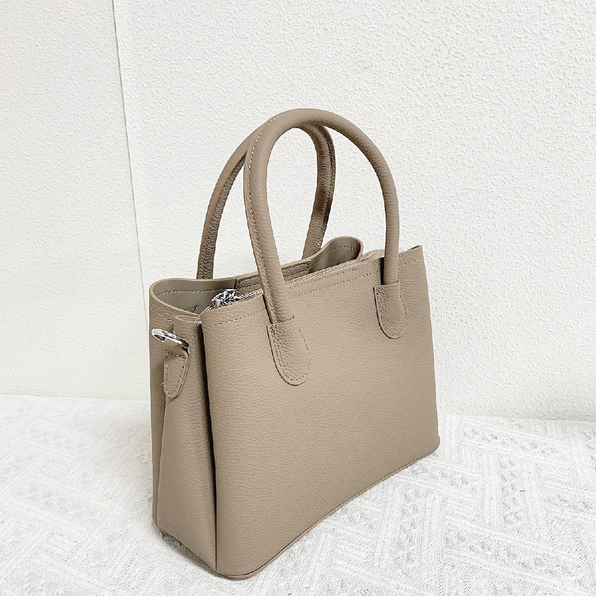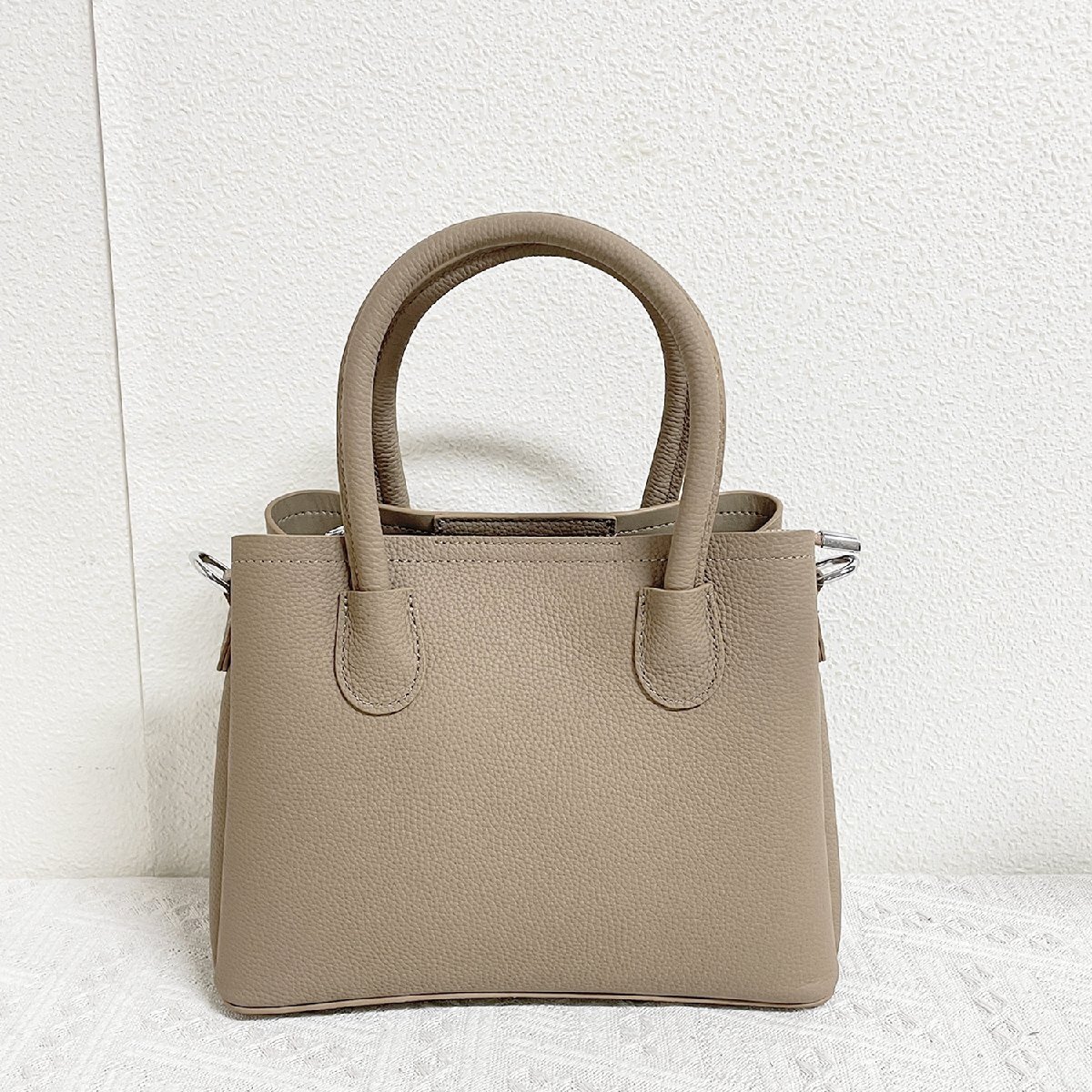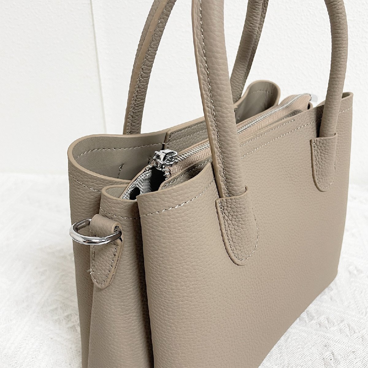 ハンドバッグは定番なデザインで、様々なシーンで活躍!両側に丁寧に施された裁縫は、デザインの一部となってお洒落で、女性らしく可愛い雰囲気を味わえます。また、内側は収納スペースが3つに分かれていて整理しやすく、ポーチ、財布、化粧品など、ディリーユースをすっぽり収納!!脱着式のロングショルダーをつけると、斜め掛けしにてお使いいただけ、両手をあけてアクティブに外出できます。