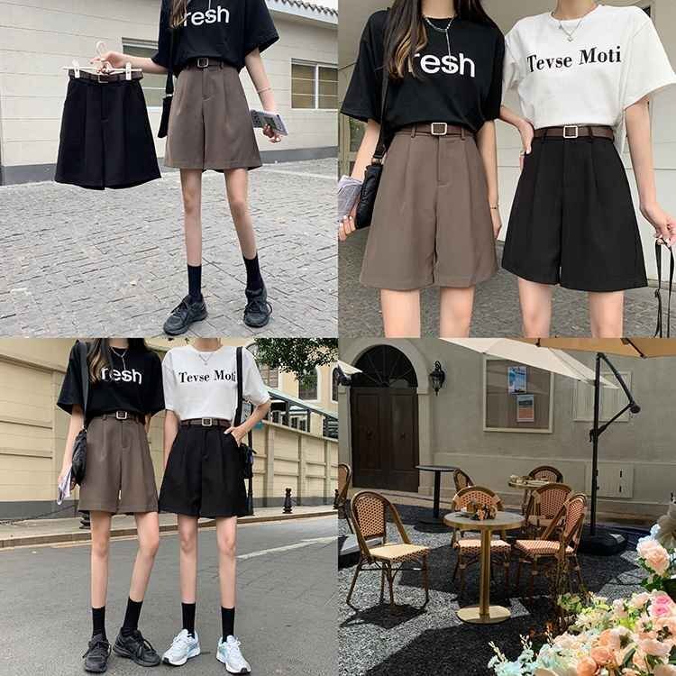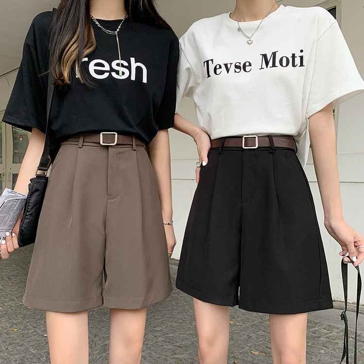 ショート丈 薄手生地 ストレート 五分丈パンツ ゆったり ショートパンツ ハイウエスト XL ブラック