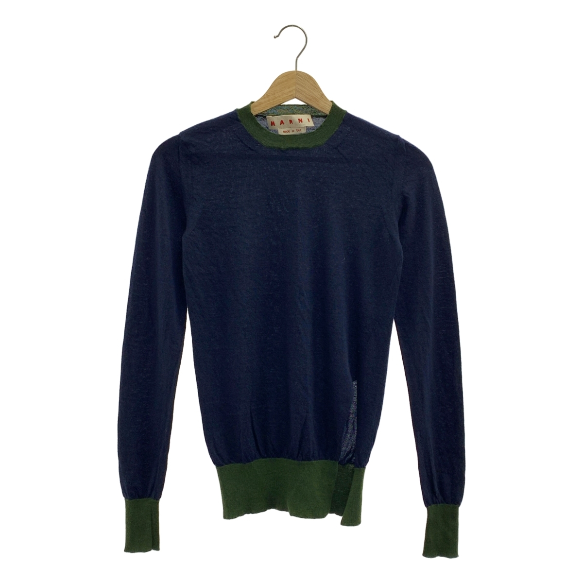MARNI / マルニ | カシミヤ サイドスリット クルーネックニット | 38 | ネイビー | レディース