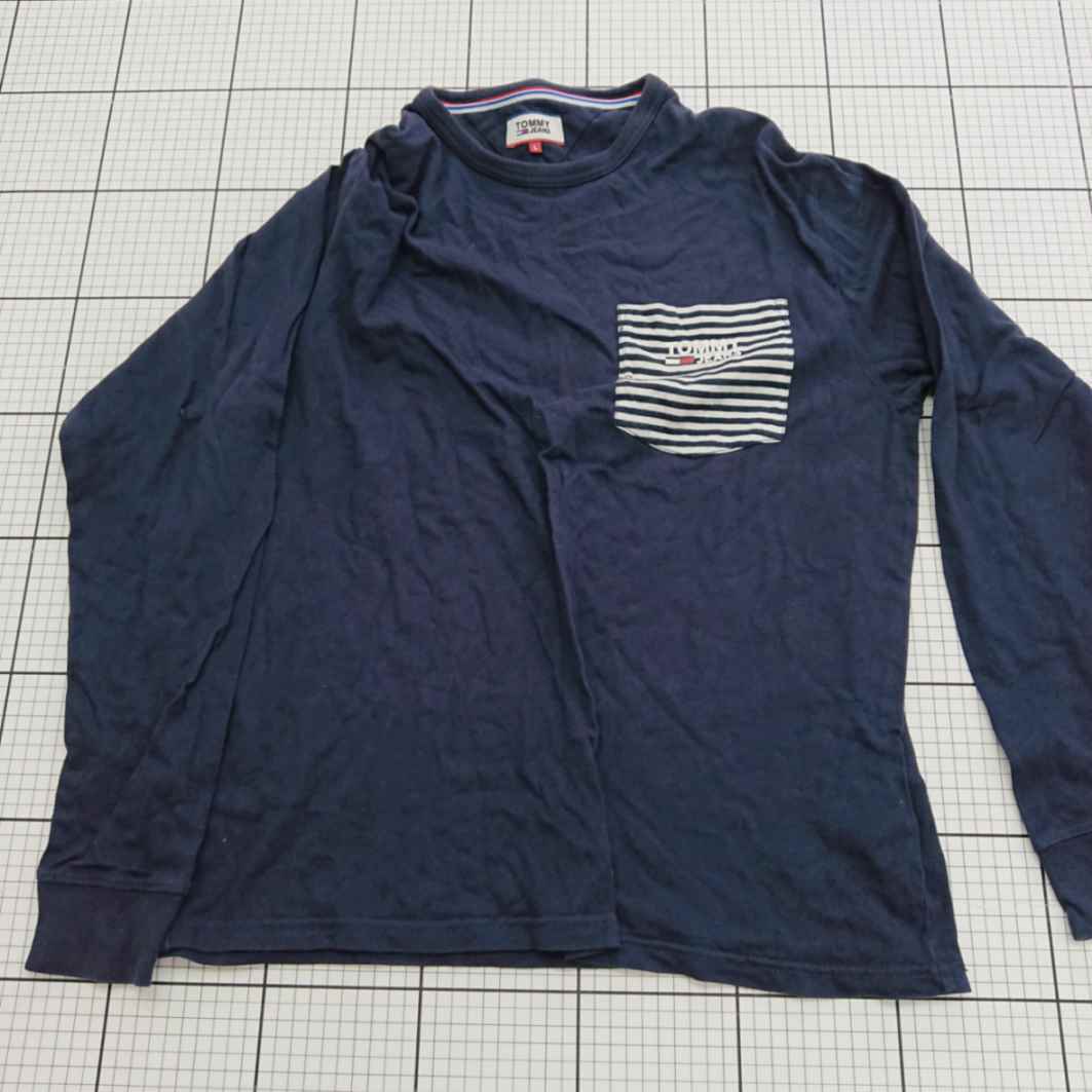 ◇ ⊇ サイズ TOMMY JEANS 長袖Tシャツ ネイビー系 Lサイズ メンズ E