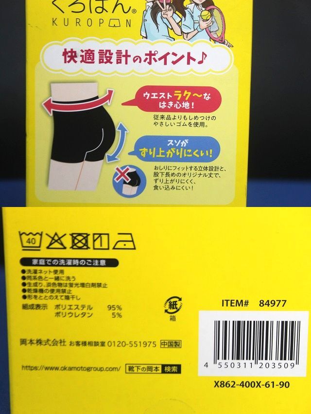 | 商品説明 | ご覧頂きありがとうございます。 こちらの商品は【岡本 くろぱん インナーショーツ ドライ 3枚組 マイクロミニ丈 さらさらDRY 吸水速乾素材使用 ブラック サイズS-M★送料360円★格安出品★】になります。 新品になります。 パッケージに若干のイタミがございます。 (写真参照) 何卒ご理解くださいませ。 ・写真撮影時はホワイトグローブを着用にて行いました。 ご安心くださいませ。 万が一、落札者様のお手元に届き不備不具合等がございましたら、返品対応をさせて頂きますのでどうぞご安心くださいませ。m(--)m (返品対応期間は商品到着1ヶ月間とさせて頂きます) 内容及び状態は写真をご覧くださいませ。m(--)m 出品は・・・写真アップされている物が全てになります。 ≪商品説明≫ おしりの膨らみにフィットする立体的な設計でズレ下がりにくく、くい込み防止やおしりや下着のはみ出しをガード! 汗ばむ季節に嬉しい吸水速乾機能で、汗をかくようなスポーツの場面にもおすすめです。 快適設計のポイント♪ 【新登場「ショート丈」でさらに選びやすい】 パンツのはみ見え・お尻の食い込みを防止し、さらにスカートからも見えにくい絶妙な丈設計! これを買えば間違いなし♪ 【毎日履きたい♪くろぱんのこだわり】 ウエストをしめつけにくいやさしいゴムを使用しており、おなかラクラク。 さらにおしりにフィットする立体設計と、独自の丈で食い込み・スソのずり上がりを防止します。 ・表記サイズ:S-M ヒップ:82-95cm ウエスト:58-70cm ---色--- ブラック×3の合計3枚セット。 画像の通りになります。 ---素材--- ポリエステル95% ポリウレタン5% ・詳しくは 元々の販売店コストコホームページ をご覧くださいませ。 元々の販売店コストコホームページ ←コチラをクリック! ★送料を少しでも抑えるため、元箱パッケージからくろぱん インナーショーツ ドライ 3枚組を取り出してビニール袋に丁寧に入れて発送をさせて頂きます。 ゆうパケットで宜しければ全国360円にて発送可能になります。 迅速な対応を心がけます。 ご入札のご検討をお願い致します。m(ーー)m ・当方では毎週多数の商品を格安出品をさせて頂いております。 複数落札の場合、可能な限りコンパクトに同梱致しまして発送をさせて頂きます。 (数量、重量によっては ゆうパックになる事がございます) どうぞ ご入札のご検討を宜しくお願い致します。m(--)m ≪気持ちよくスムーズな御取引ができるよう努めて参ります≫ ★商品画像はPCや環境の違いにより現物とは若干色合いが違う場合もございますので予めご了承ください。 ★神経質な方のご入札はご遠慮くださいませ。 ★他にも楽しいアイテム等を格安出品致しております。 宜しければご覧くださいませ。 ☆チャント梱包して発送致します。 No.5641 |