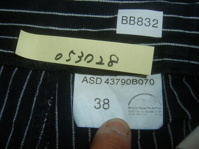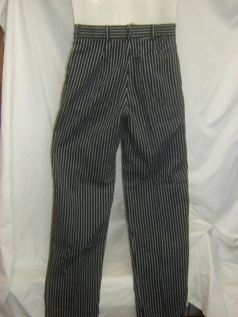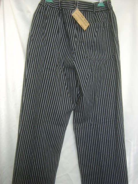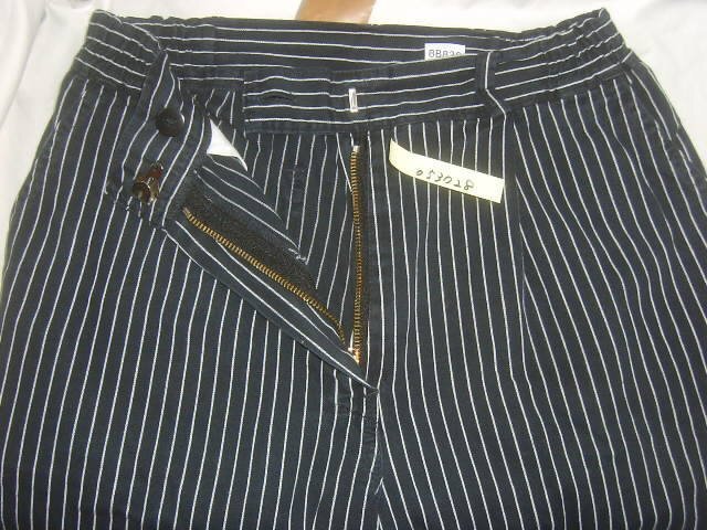 1.2枚目の写真は流用です。 ドイツ軍で採用されていたコックパンツです。色は黒に近い濃紺です。左右ポケットと後ろにも1つポケットが付いています。細いピッチにホワイトカラーのストライプが特徴です。柔らかな薄手のコットンが使用され、春夏と快適に履いていただけるパンツです。ゆったりとしたシルエットに少しテーパードがかかっています。ベルトループ付きでギュッとウエストを絞って履いていただいても、スッキリと違和感なく着用していただけます。 適度な色落ちのユーズドです。 サイズ38でウエスト70cm、太腿幅30cm、全長108cm、股下82cm程度です。 沖縄離島を除く全国元払い500円でお送りいたします。落札価格にプラスでお願いします。