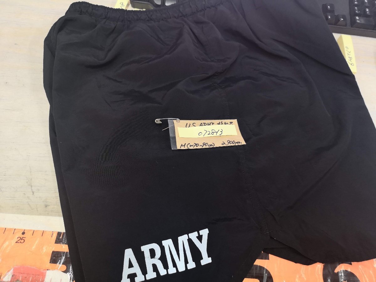 4枚目までの写真は流用です。 USアーミー放出品の本物トレーニングジョグパンツ。素材はさらさらのナイロン、インナーにSUPPLEXのホールド入り。ARMYのプリントは夜も安心のリフレクター。 サイズMは全長44cm、股下13cm、ウエストが70から90センチ程度です。 ヤマトネコポス便にて全国200円でお送りいたします。落札価格にプラスでお願いします。