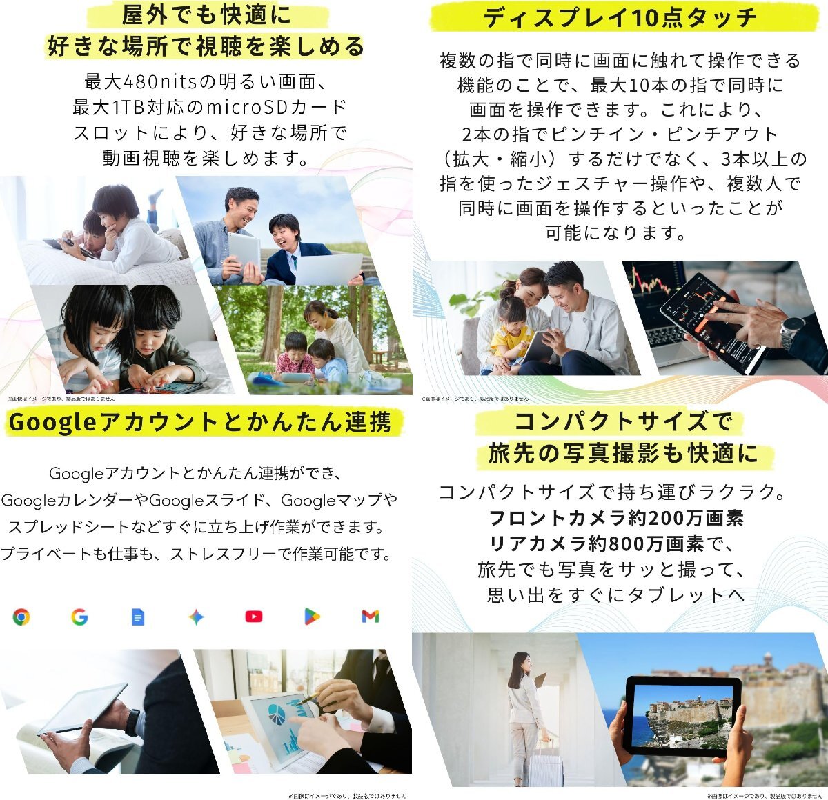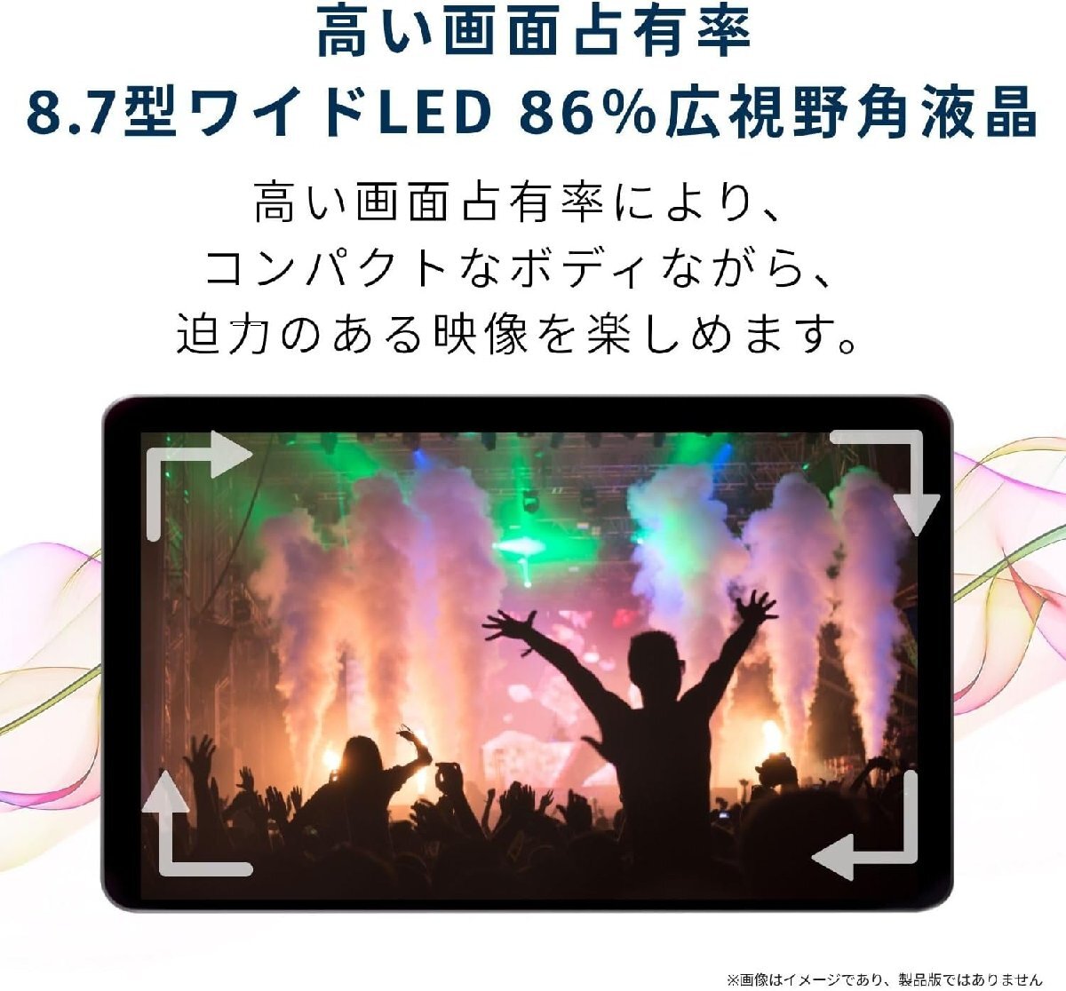 • ディスプレイ:8.7 型ワイドLED 広視野角液晶(1340×800ドット)、通信機能:無線LAN(IEEE802.11ac/a/b/g/n準拠)、Bluetooth テクノロジー本体内蔵(Ver5.3)