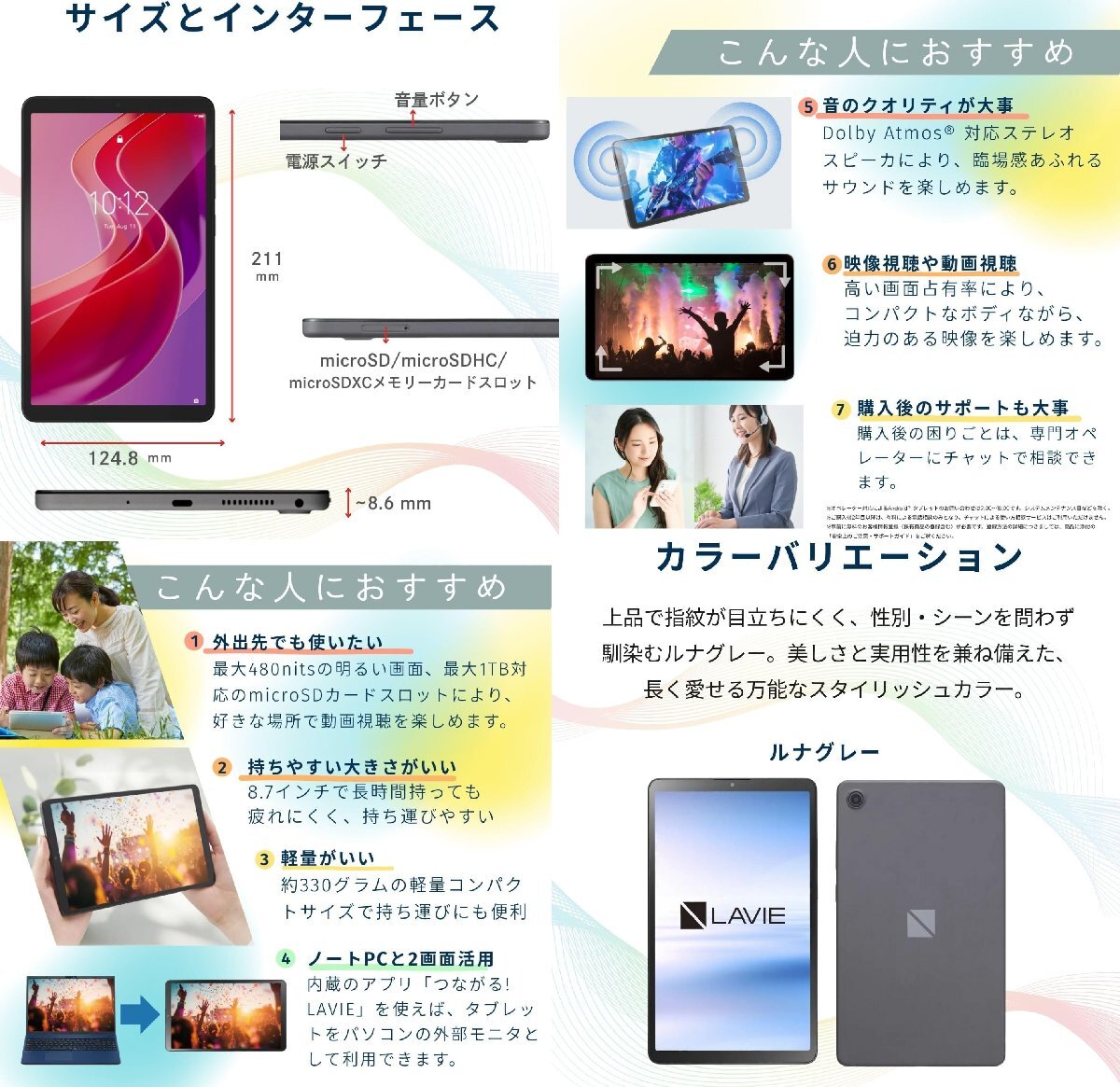NEC LAVIE T8 タブレット 8.7インチ wi-fiモデル Android 14 MediaTek Helio G85 4GB 64GB LED 広視野角液晶 ルナグレー TAB08H05 保証有