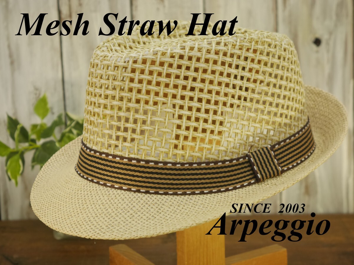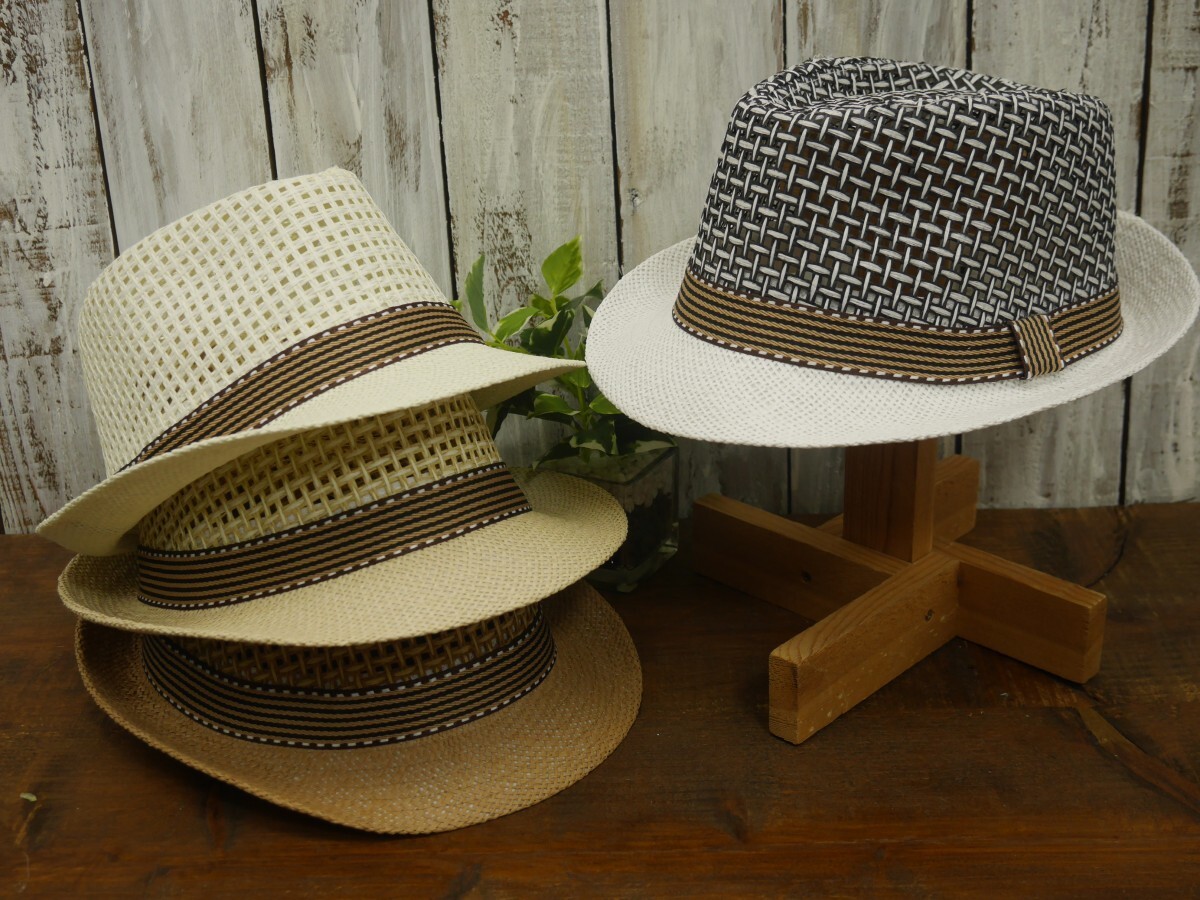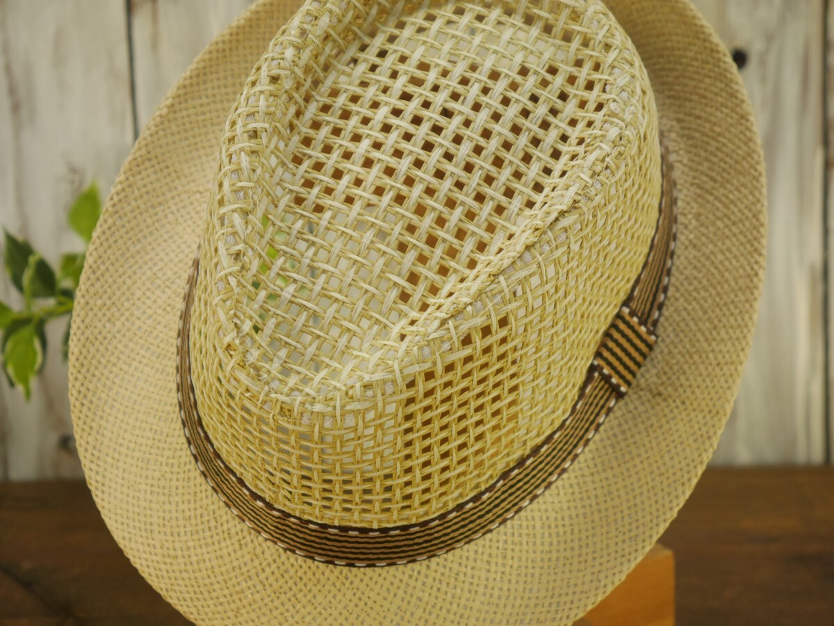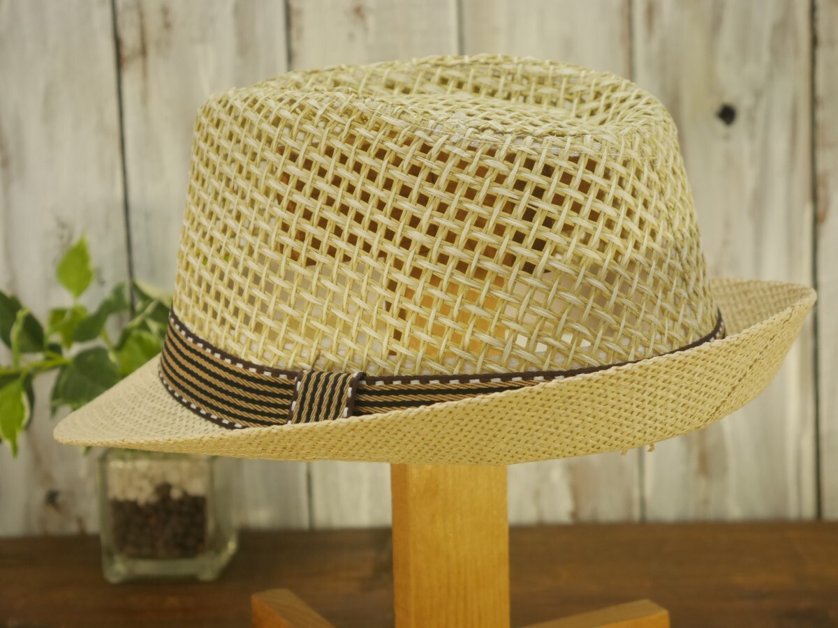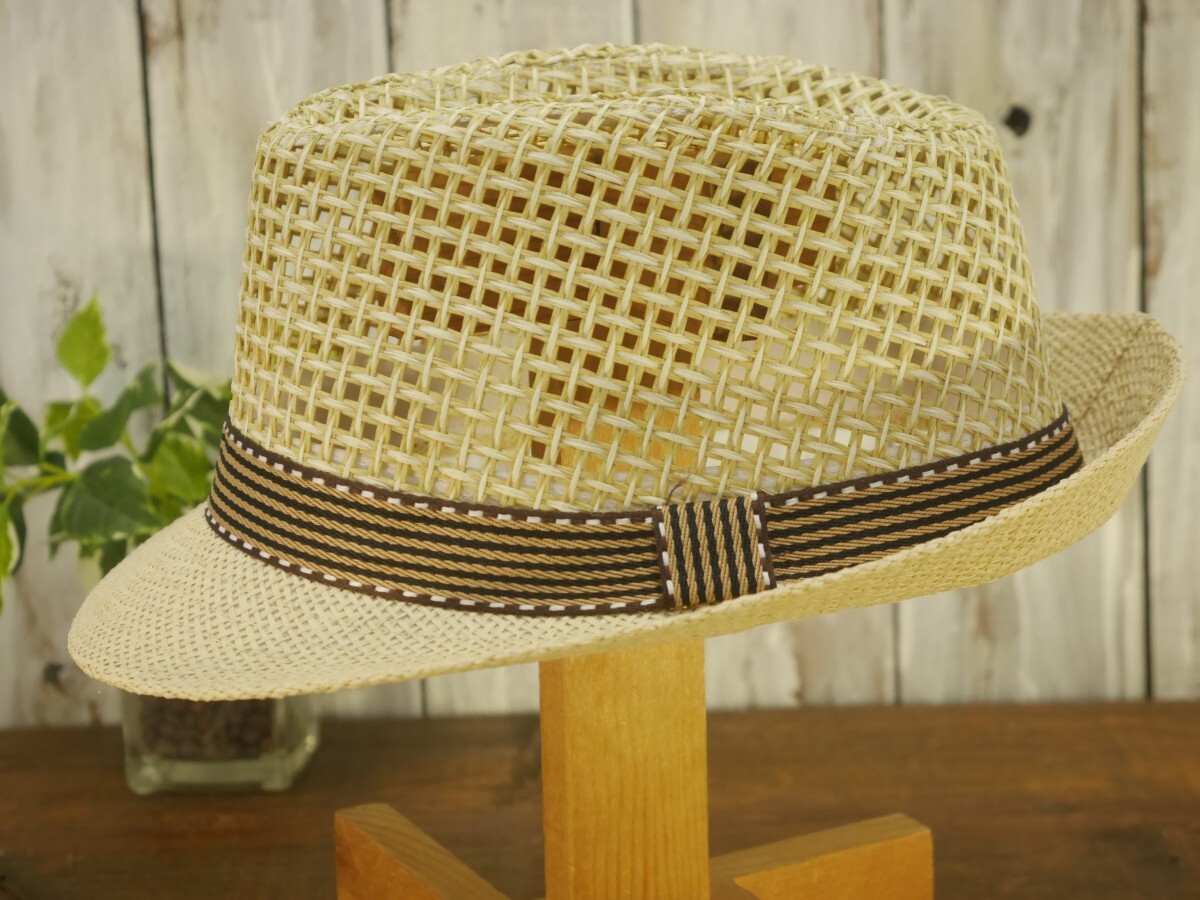 全国一律送料450円 編み込みメッシュ ストローハット ベージュ フェドラハット パナマ ボルサリーノ 麦わら 中折れ