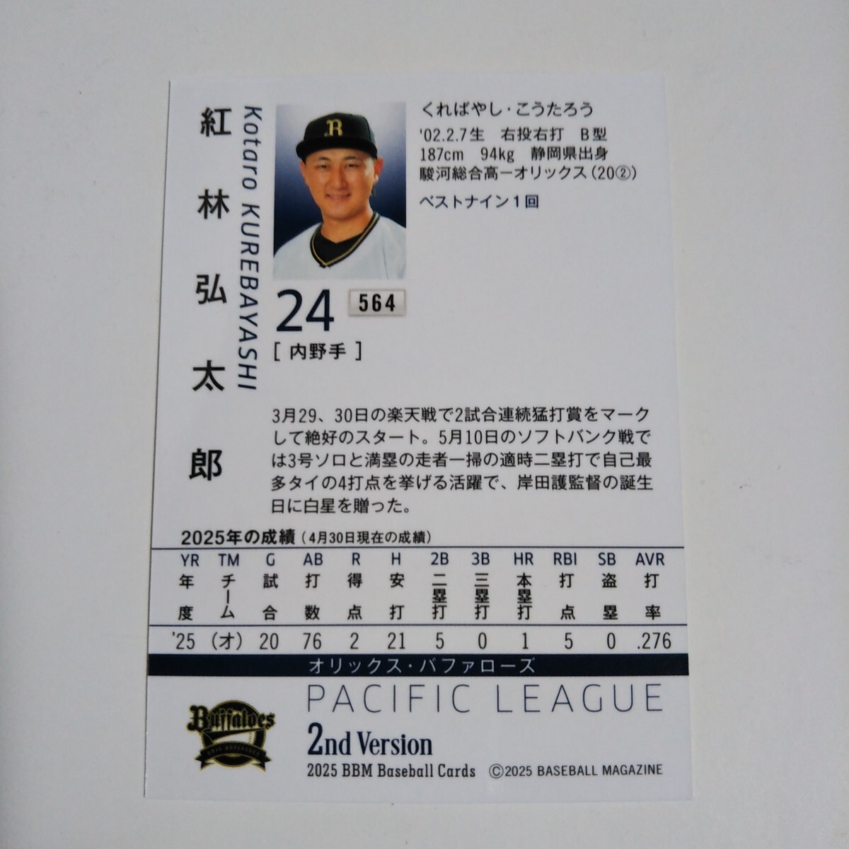 BBM2025 2nd オリックス 紅林弘太郎 銀箔サイン パラレル カード No.564