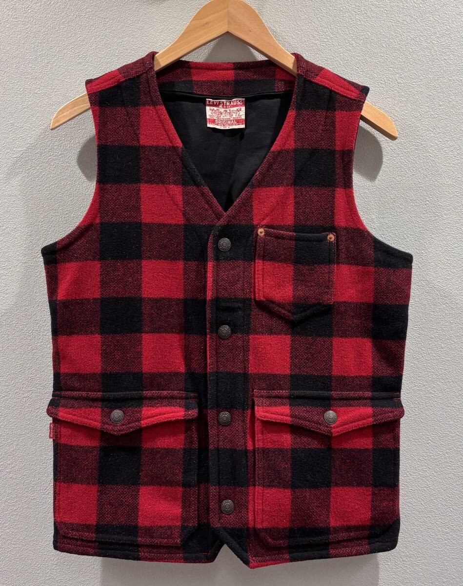 Levi's リーバイス ブロック チェック ウール ベスト サイズM ブラック レッド