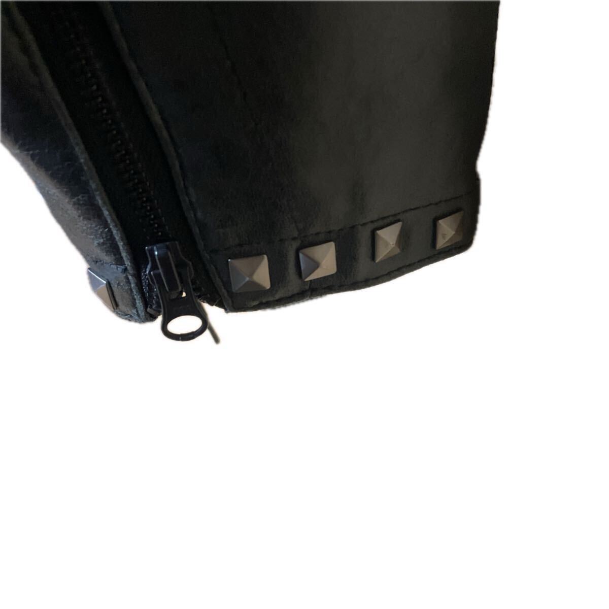 襟と袖口のスタッズがちょっとワイルドさを醸し出しています。また両側脇はレースアップで腹囲の調整ができます。