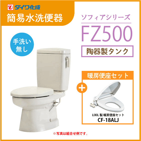 簡易水洗便器 簡易水洗トイレ クリーンフラッシュ「ソフィアシリーズ」 FZ500-N00(手洗なし)・暖房便座セット ダイワ化成