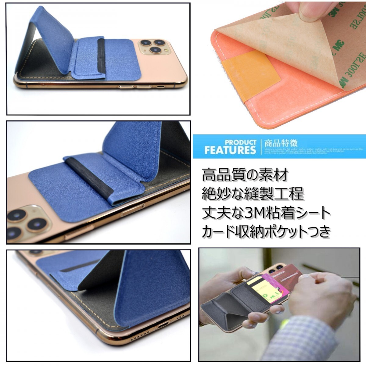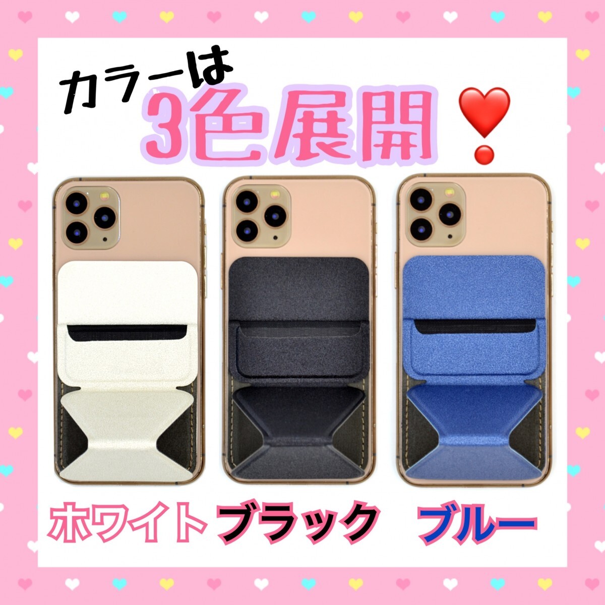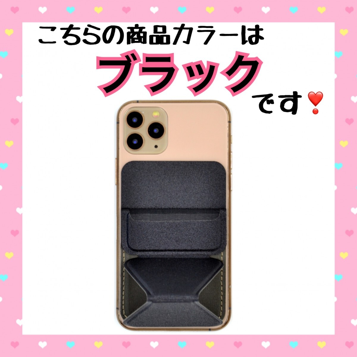 スマホスタンド 便利 スマホリング 薄型 折りたたみ式 縦横自在 カード収納 スマホ固定 マグネットプレート付属 黒 ブラック 送料無料 格安