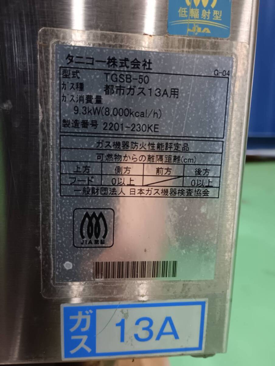 | 《名称》ゆで麺機 《メーカー》タニコー 《型式》TGSB-50 《外寸(幅×奥行×高さ㎜)》約500×640×1110 《電源》都市ガス ※中古品の為、現状での販売(付属品等写真の限り)となります。ご了承ください。 |