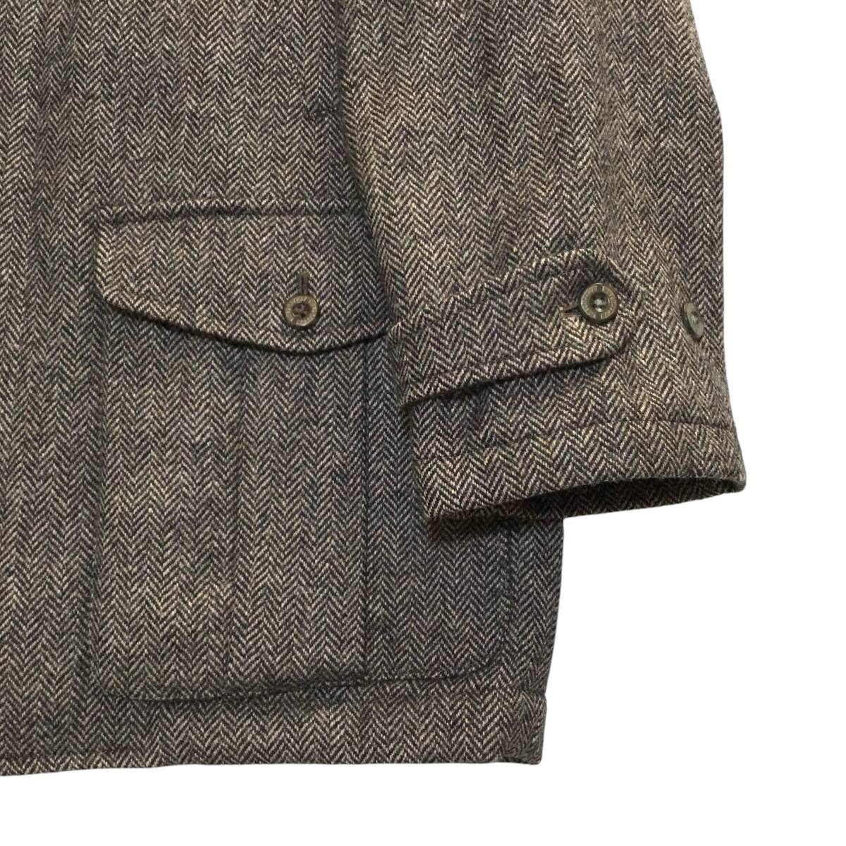 特徴 :暖かみのあるウール素材を贅沢に使用。ややゆったりめのオーバーサイズのシルエットのもので前衛的なフィット感のもの。クラシックで洗練されたグレー系のヘリンボーン織りが、英国らしい重厚感とエレガンスを漂わせます。内側は光沢のある上品なシャンパンゴールドのキルティング仕様。保温性が高く、冬のシーズンに最適な防寒性を備えています。襟付きのデザイン、フロントの複数のポケット(フラップ付きの大きなポケットなど)、袖口のタブなど、フィールドコートならではの機能性と耐久性を兼ね備えています。首元の「Burberrys」旧ロゴタグがヴィンテージファンにはたまらない魅力。細部に至るまで丁寧に作り込まれた、英国ブランドの誇りを感じさせる逸品です!