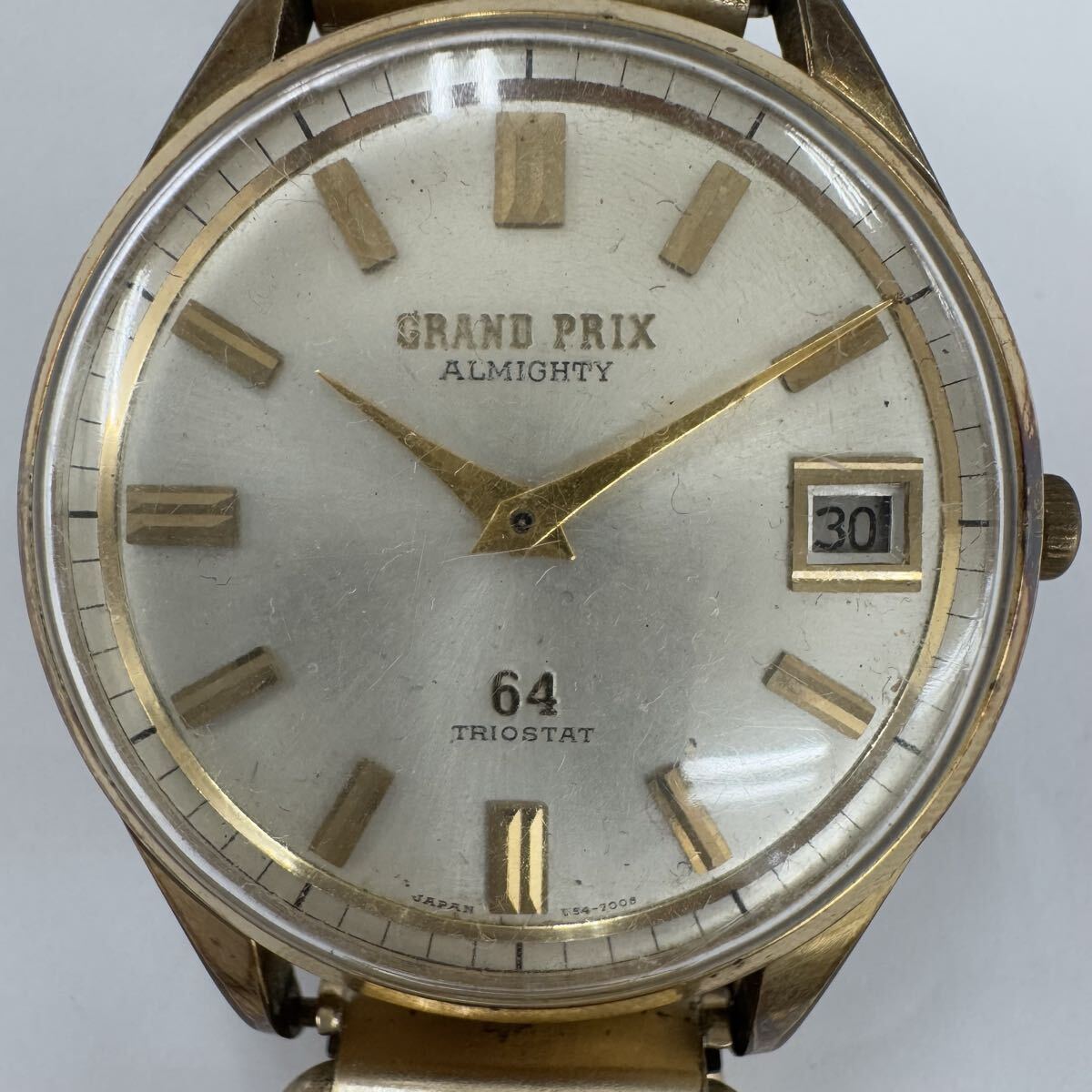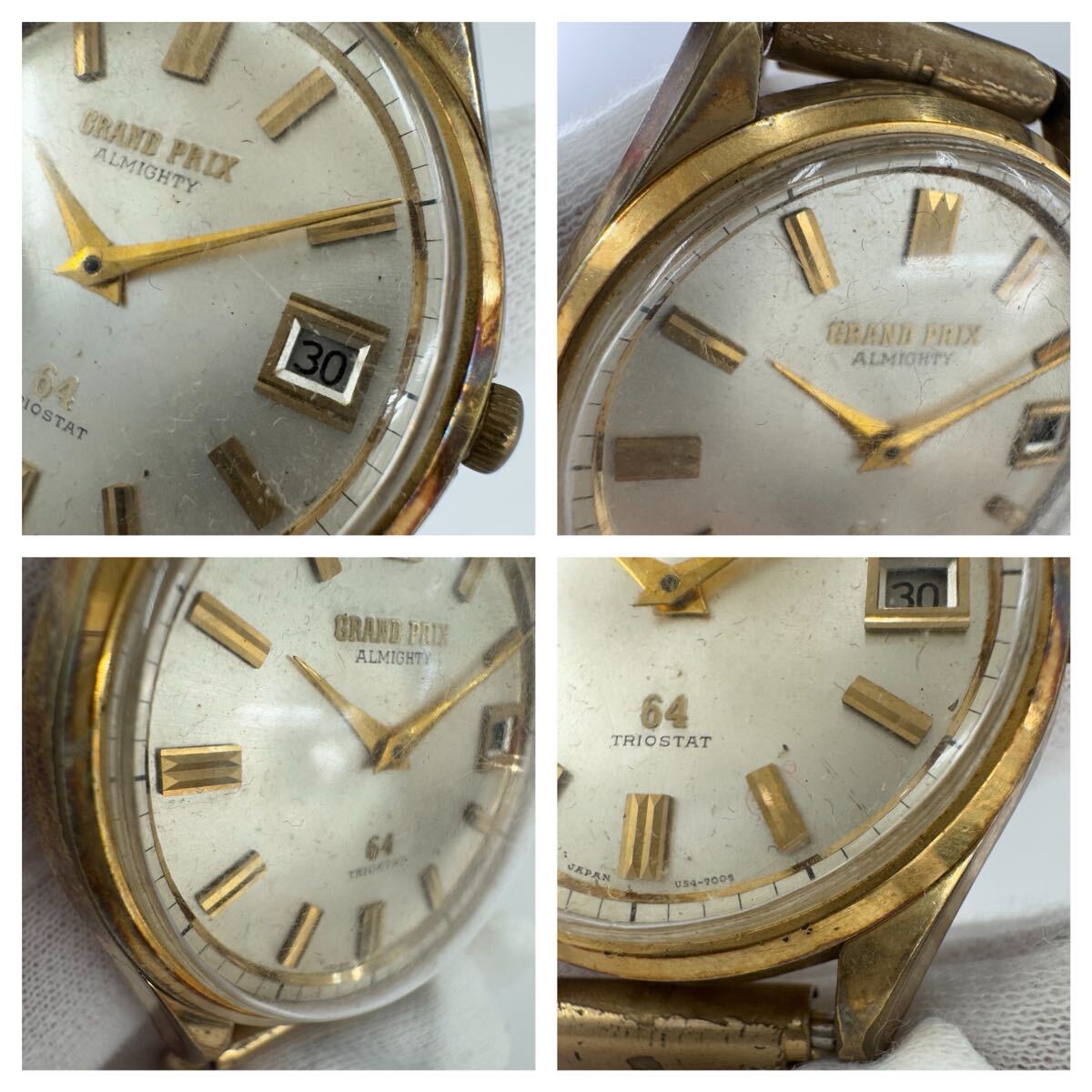 ★GRAND PRIX グランドプリックス ALMIGHTY デイト 64 TRIOSTAT メンズ 腕時計 自動巻き 稼働 ジャンク ゴールドカラー 中古品 OB1736