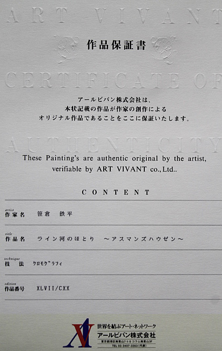 ■笹倉鉄平 【ライン河のほとり~アスマンズハウゼン~】 クロモグラフィ 直筆サイン エディション有り 保証書有り