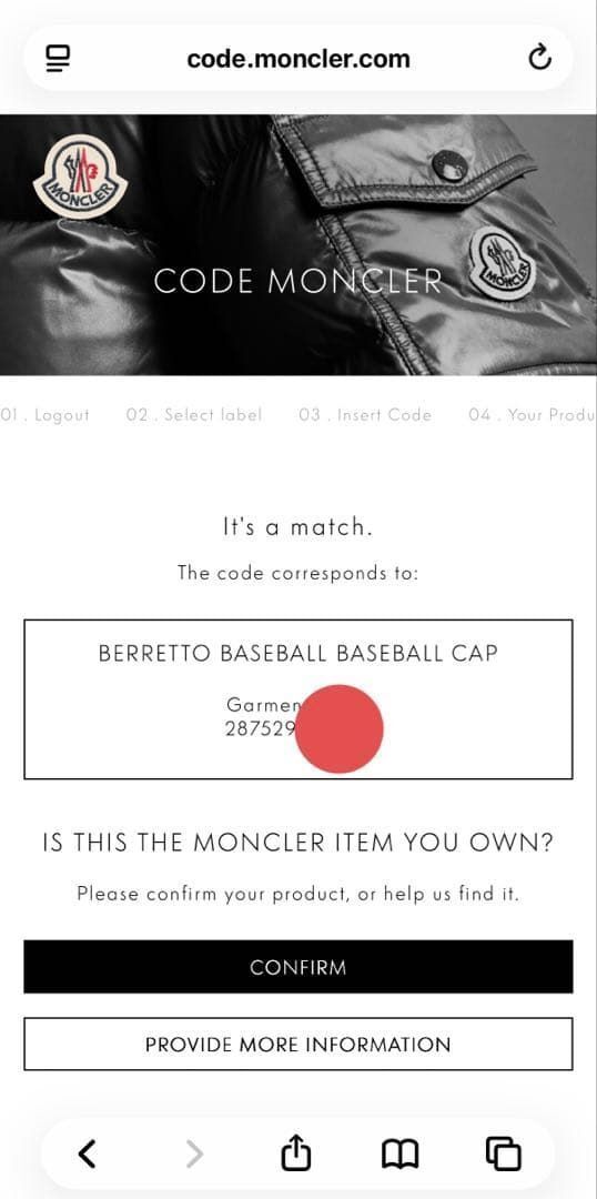 モンクレール製品についているタグ番号の証明が1番最後の写真になります。