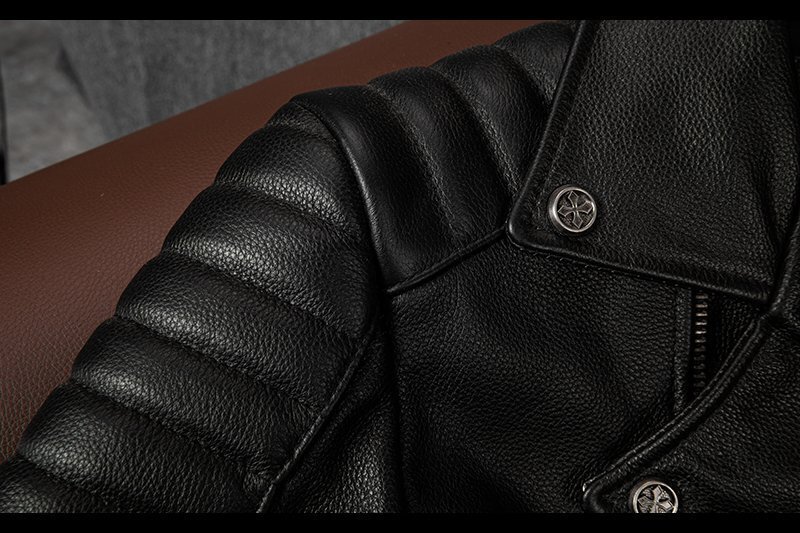 ◆状態:新品未使用素材:牛革◆スタイル/カラー:掲載の実物写真通り◆落札後、ご希望サイズをお知らせ下さい。S 着丈61cm 肩幅42cm 胸囲104cm 袖丈60cmM 着丈62cm 肩幅43cm 胸囲108m 袖丈61cmL 着丈63cm 肩幅44cm 胸囲112cm 袖丈62cmXL