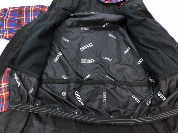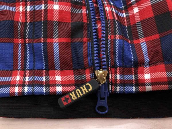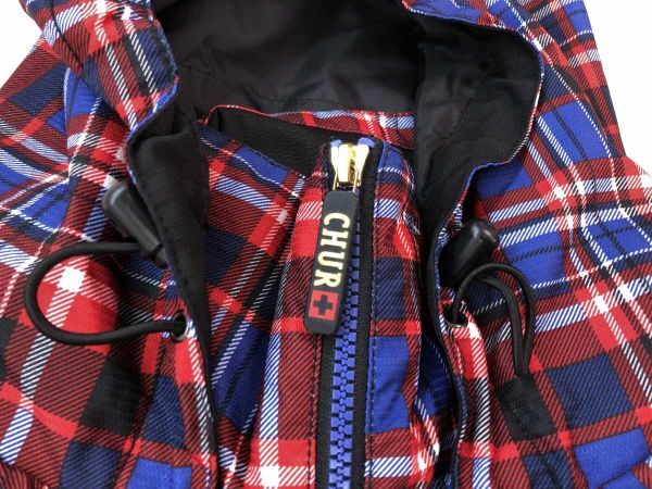 CHUR クール レトロ スポーツ ストリート チェック総柄 スキー スノーボード 中綿パーカー ジャケット パウダーガード メンズ 赤青黒です。