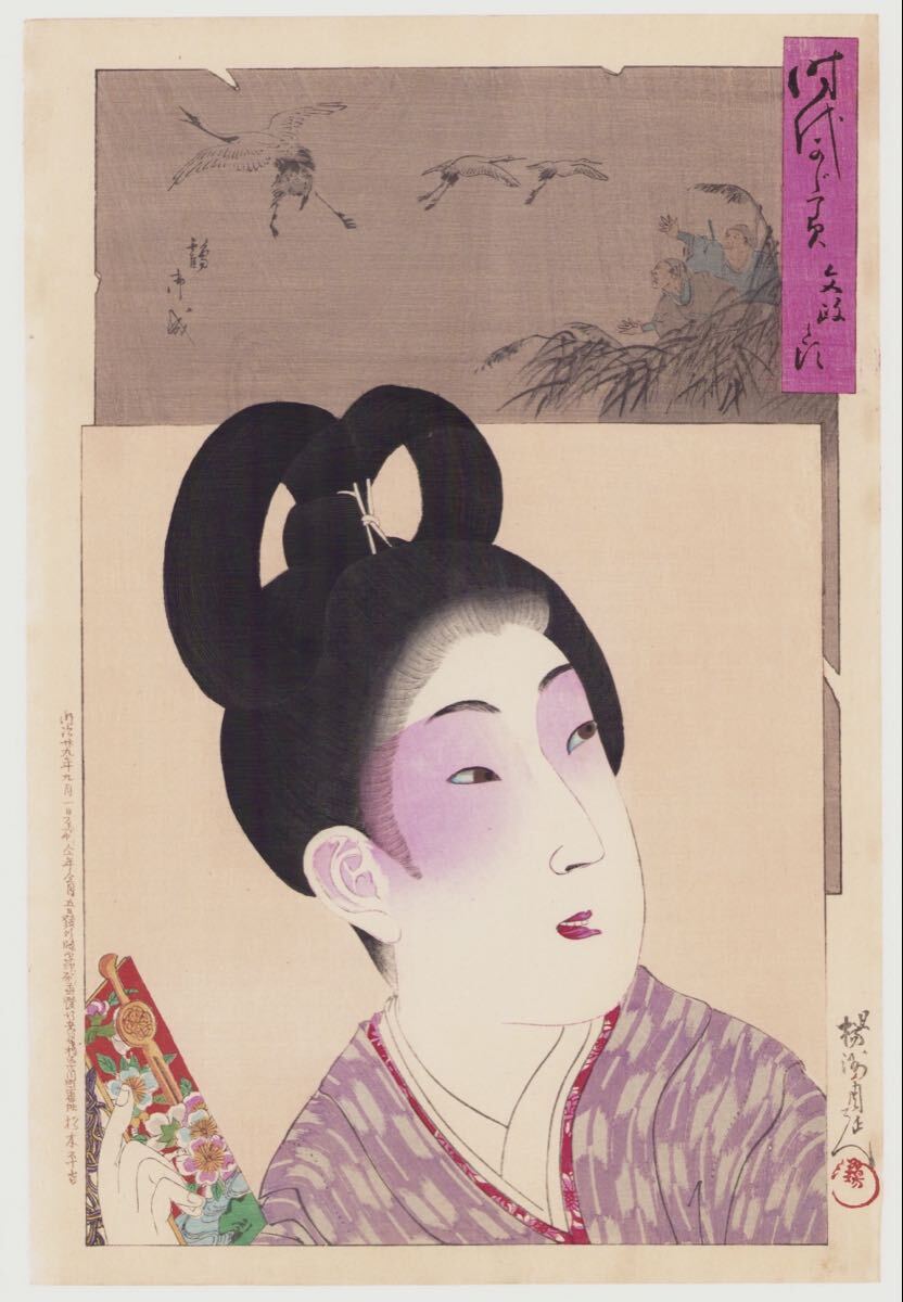 A12-10-7 文政之頃 時代かがみ 周延 明治29年 本物 浮世絵 木版画 大判 錦絵 美人画 大首絵 Chikanobu JapanesePrints Ukiyoe【真作】