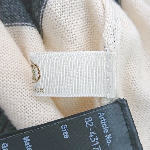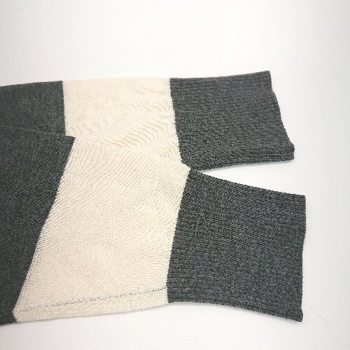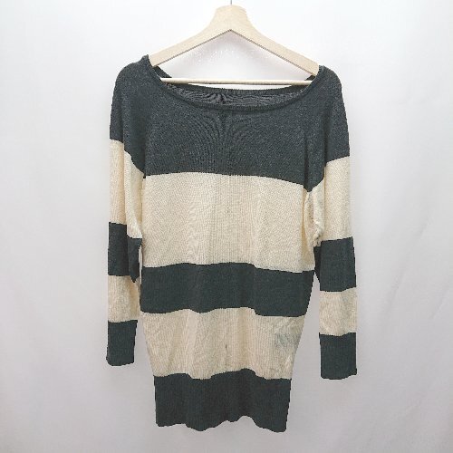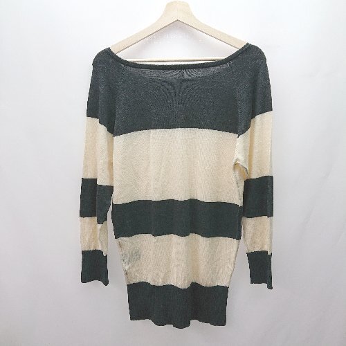 ◇ Le souk ルスーク ボーダー柄 透け感あり ダッチネック 薄手 長袖 セーター サイズ38 グレー/ホワイト レディース E