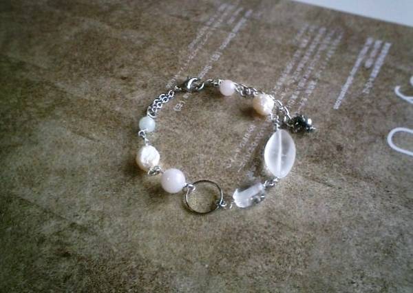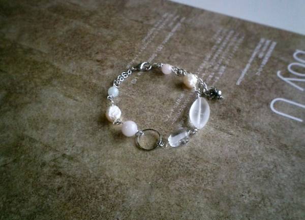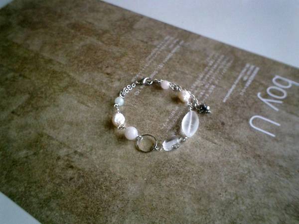ロマンチックを紡いで・・シリーズです♪やさしい気持ち・・繊細な白のブレスレットです♪パステルベリルのブレスレットは6ミリ、8ミリの丸玉のベリルに淡水パールやフロスト水晶や水晶を合わせて大人可愛い表情です♪長さは全長23センチ位で調節自由です♪♪お揃いのブレスレットやネックレスも出品しています♪シンプルで飽きのこないいつまでも着けられるデザインを考えて作りました!ハンドメイドをご理解頂いてノークレーム、ノーリターンでお願いします