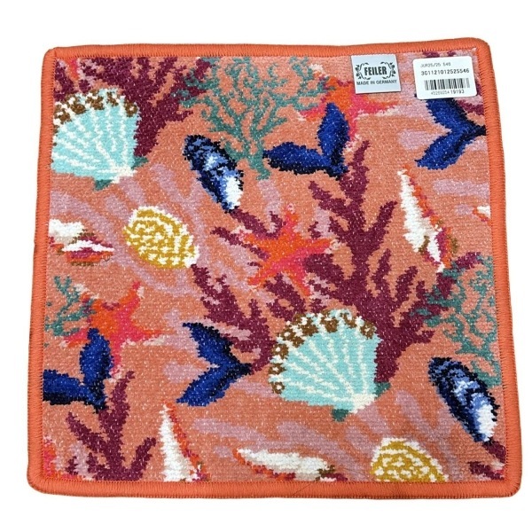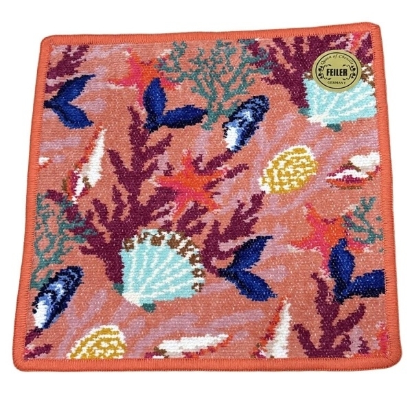 フェイラー FEILER - オレンジ×ネイビー×マルチ ハンドタオル/ジョングルコライユ/貝柄/サンゴ 新品同様 小物