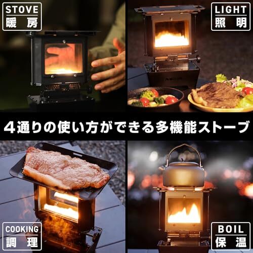VASTLAND アイロンストーブ キャンプ ストーブ ランタンストーブ 耐熱ガラス窓 鉄製天板 収納袋 替え芯付き ra