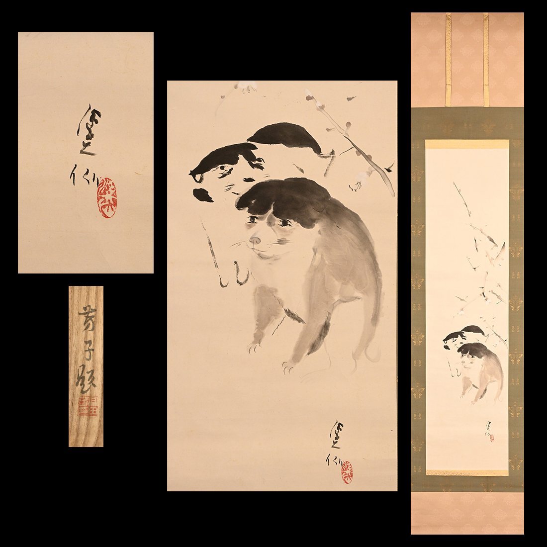 【永】f031【兵庫県の図書館や博物館の館長を歴任された歴史研究家遺族委託品】掛軸  冨田溪仙 子犬画 奥様の芳子さん鑑定付日本画優品