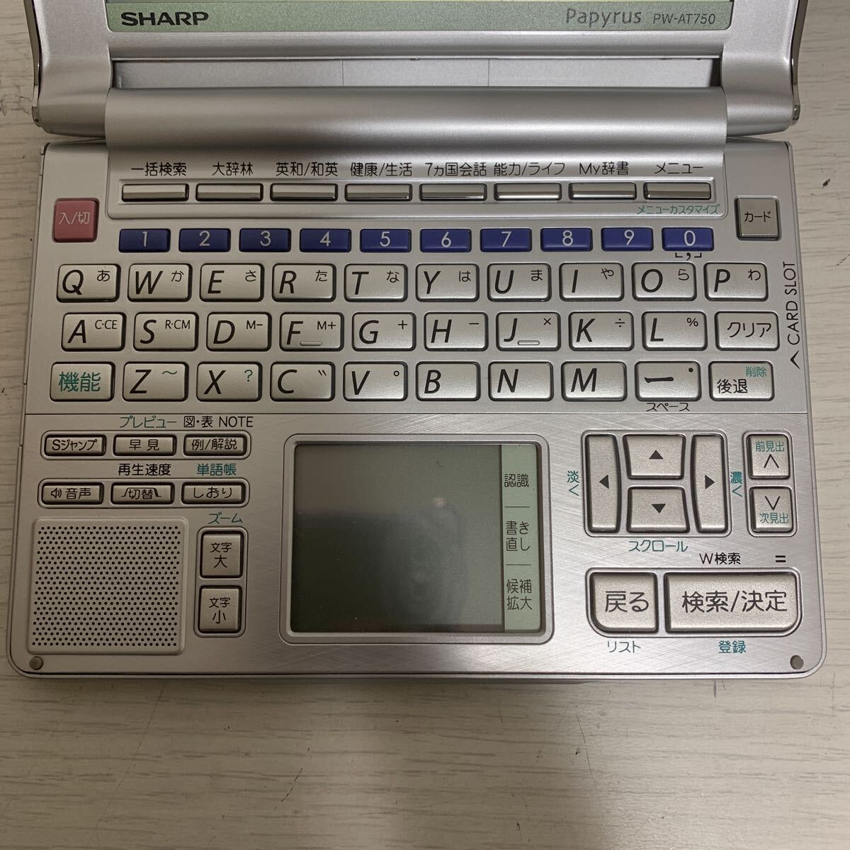 【動作未確認】SHARP シャープ Papyrus PW-AT750 電子辞書 シルバー ケース+イヤホン付 箱なし