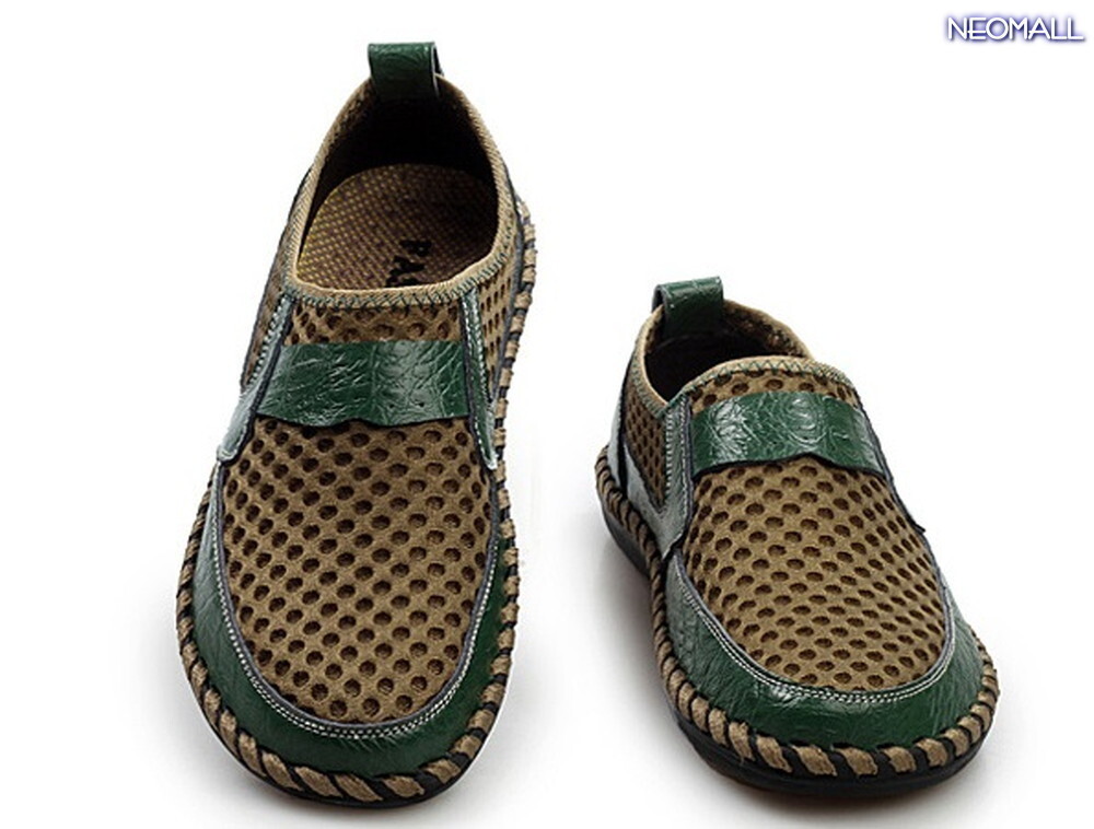 1スタ☆ ローファー ドライビングシューズ【405】グリーン 25.5cm メッシュ 夏 通気 軽量 スニーカー スリッポン 紳士靴 カジュアル