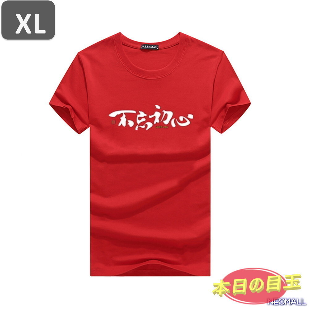 本日のお買得 ☆ 丸首 半袖 Tシャツ【463】 レッド XLサイズ トップス シャツ シンプル イラスト デザイン 春夏