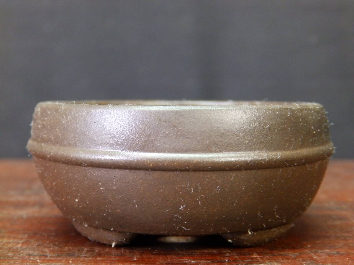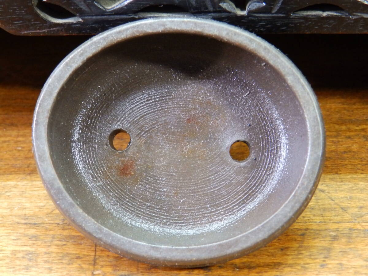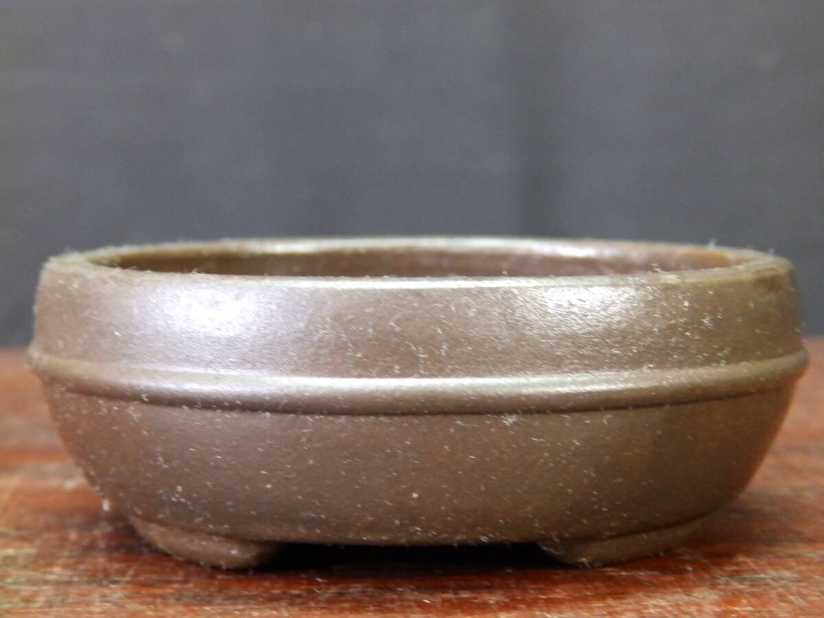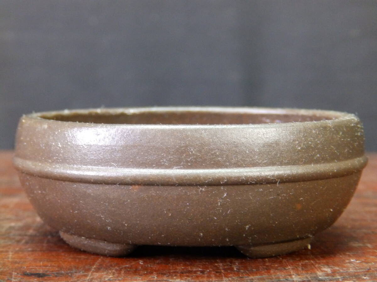 ★盆栽日和★ 【中国宜興】 紫泥胴紐楕円鉢 8㎝