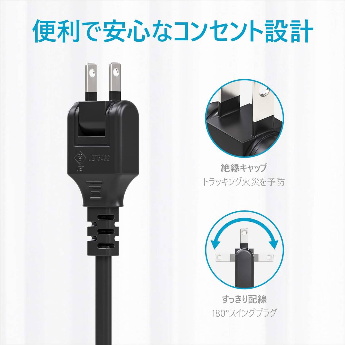 【使用者の利便性に配慮】電源タップのプラグが180°折りたたみ可能で、狭い場所でも使用できます。1.5メートルありの延長コードは、コンセントから離れた場所でも充電できるし、コードの長さも扱いやすいです。この電源タップは小型でコンパクト、携帯が便利で、出張や旅行などにも最適です。