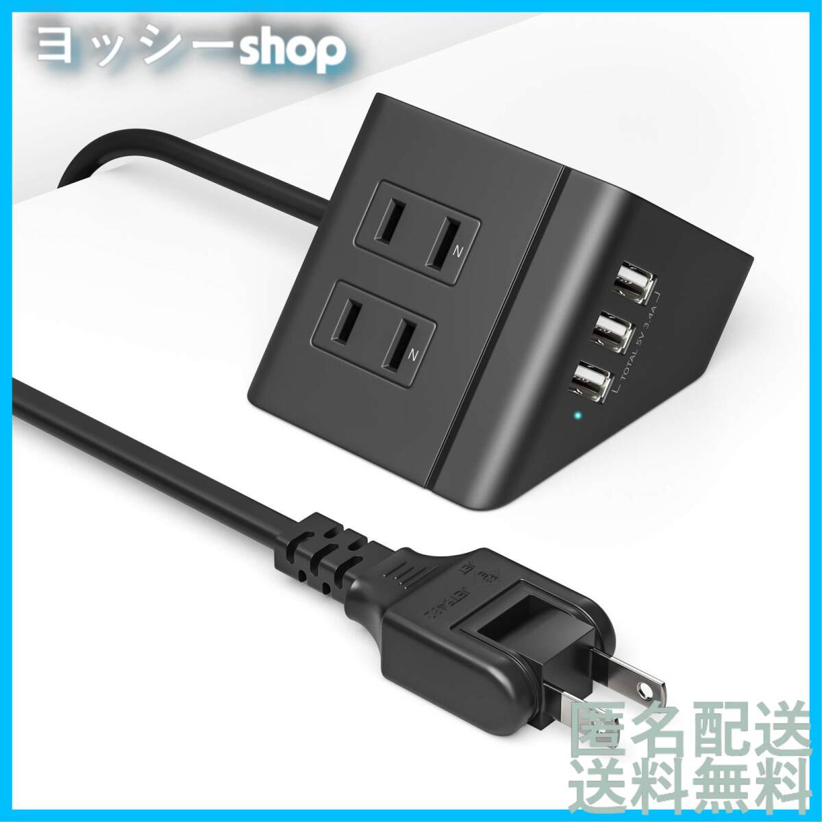 Letmy 電源タップ usb 延長コード 1.5m 4個AC口 3USBポート コンセント 分岐 テーブルタップ 急速充電 1500W 過負荷保護 小型 たこあしコンセント PSE認証済み AS-2312 父の日ギフト プレゼント ブラック