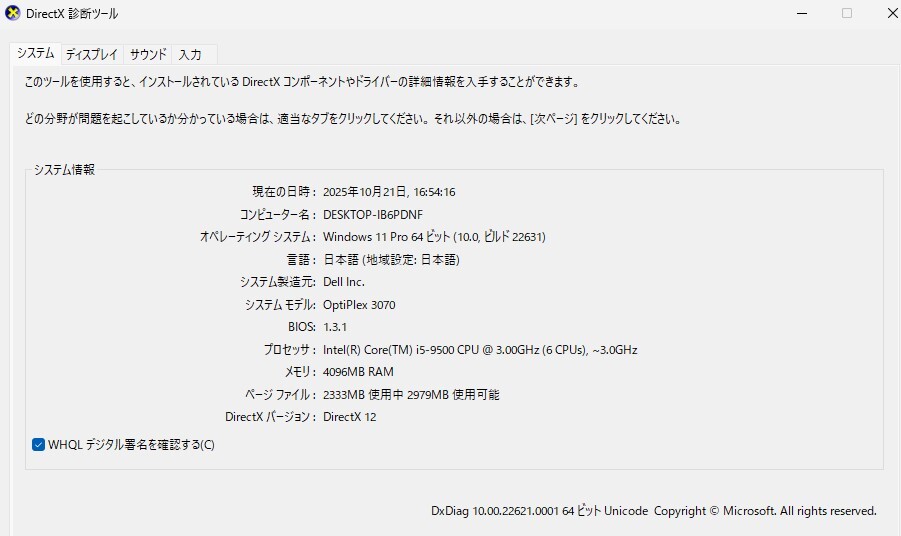| OS | Windows 11 Pro (ライセンス認証済) |