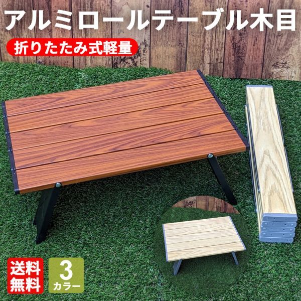 ★☆送料無料 アウトドア ソロテーブル ロールテーブル キャンプ テーブル サイドテーブル アルミ 木目調 ブラウン☆★ |