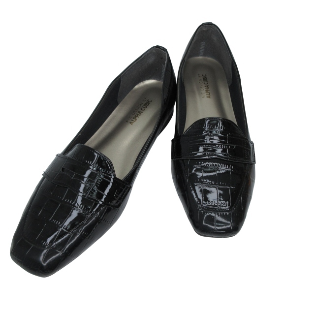 アルファキュービック ALPHA CUBIC ローファー 型押し エナメル 24.5cm EEE ブラック k31441 1205 レディース