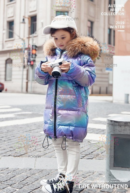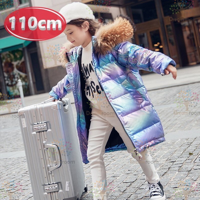 kids シャイニー ダウンコート ロングコート ブルー【110cm】中綿 防水 子供 冬物 冬服 K-303